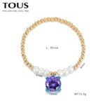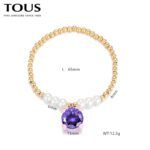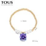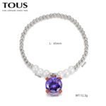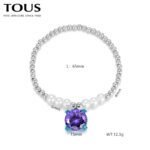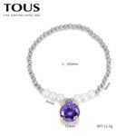 Immersed in the interweaving of fantasy and fashion, TOUS has carefully crafted this 925 silver purple zircon round bead pearl four cornered teddy bear colorful bracelet that combines elegance and fun. As a perfect fusion of brand classic and modern design, this bracelet not only showcases TOUS’s meticulous attention to detail, but also endows the wearer with infinite charm and personal style.