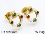 Four color zircon inlay: On the circular ring, four colorful zircons are carefully inlaid. These zircons appear in different colors, such as blue, pink, green, and yellow, which complement each other and are as colorful as a rainbow, adding a dazzling light to the earrings.