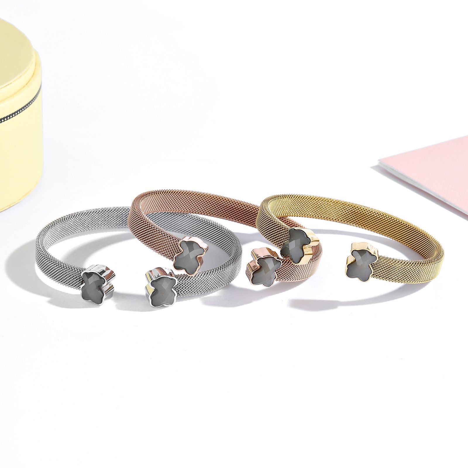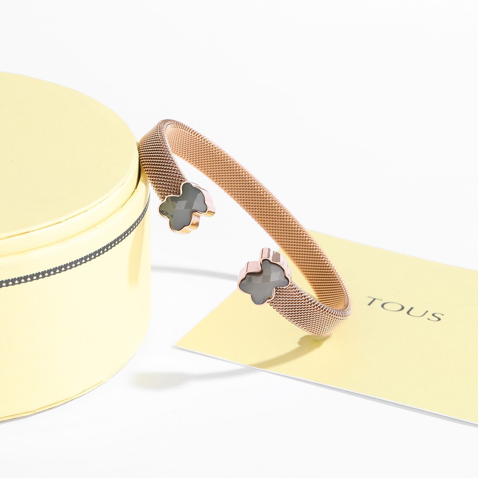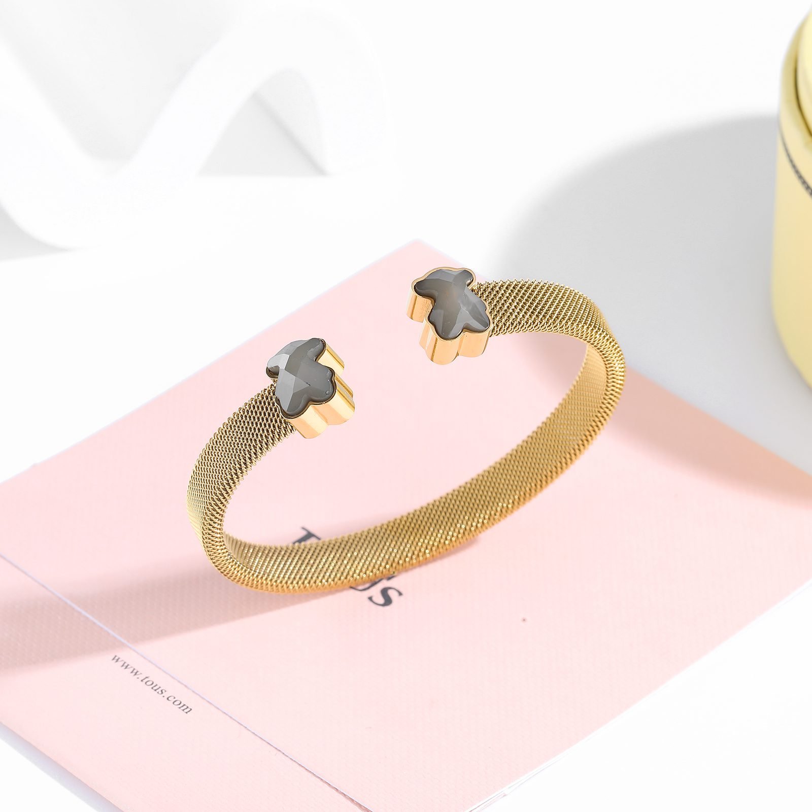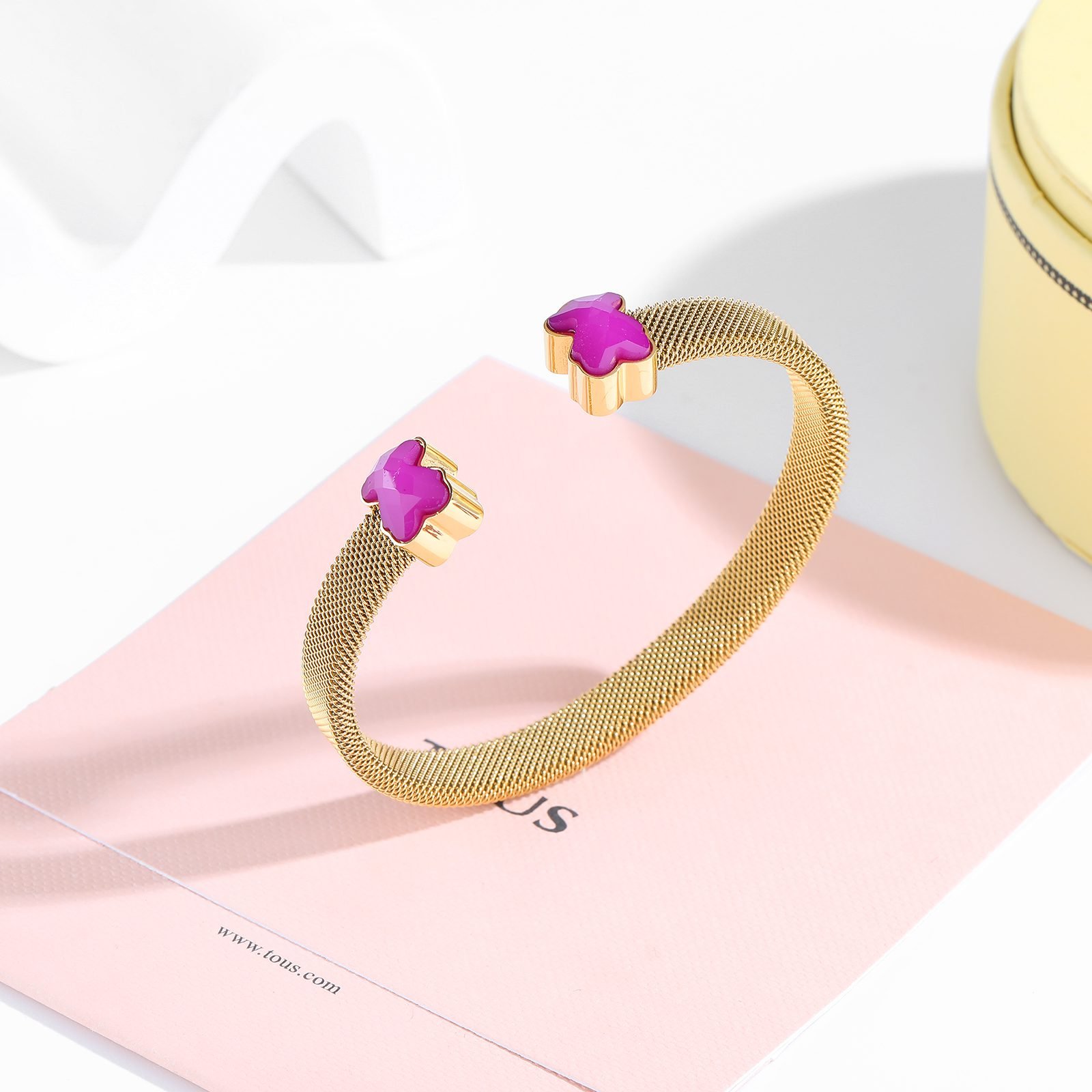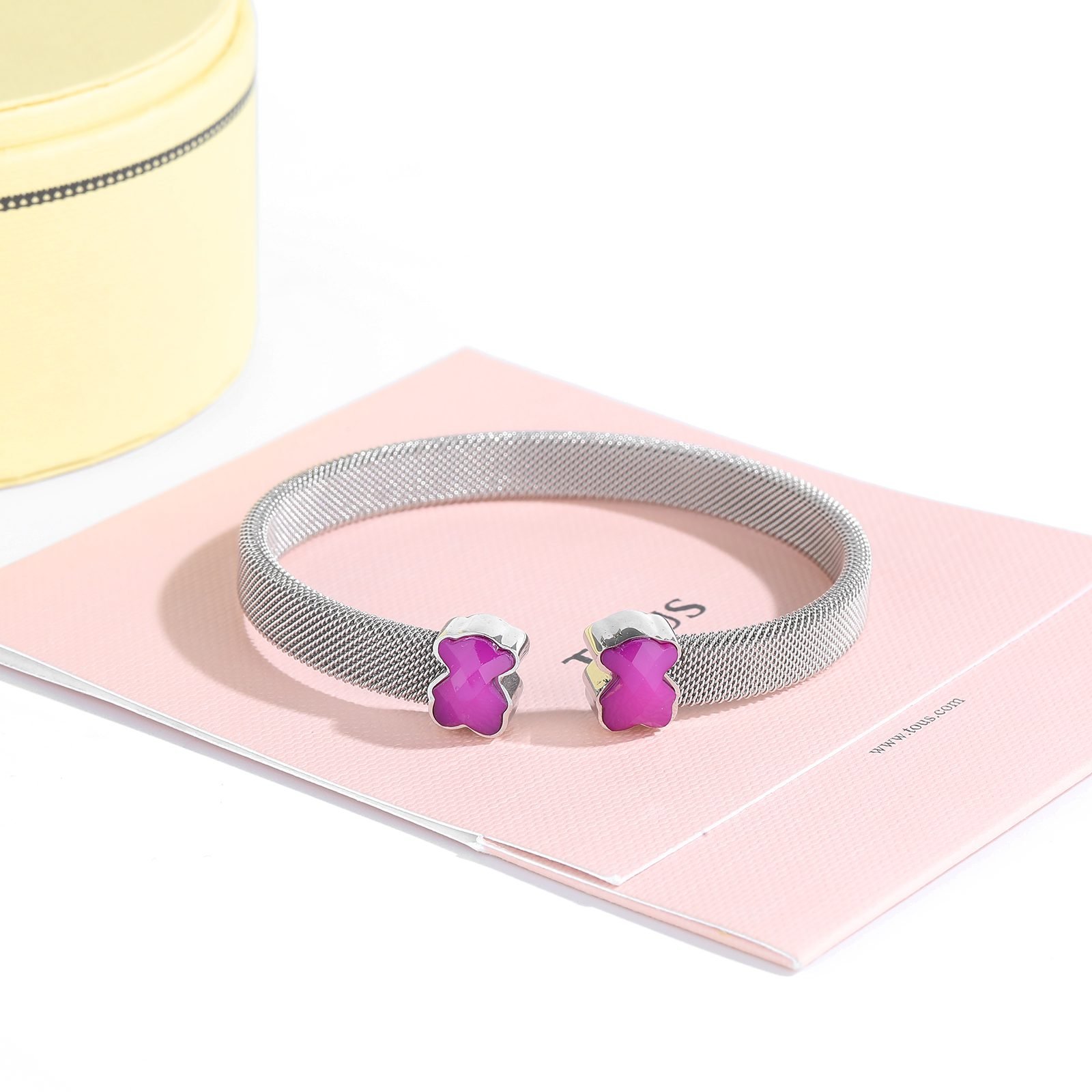 TOUS, This jewelry brand, originating from Spain and full of fairy tale colors and warm emotions, once again presents you with a simple yet personalized 925 silver minimalist purple and gray bear opening bracelet with exquisite design. This bracelet not only combines classic and modern aesthetic concepts, but also becomes the finishing touch in your daily wear with its unique charm. Selected high-quality 925 sterling silver as the main material, ensuring that every side of the bracelet shines with a warm and pure luster. The superior characteristics of 925 silver make this bracelet not only exquisite in appearance, but also excellent in durability and skin friendliness, suitable for long-term wearing of various skin types, without fear of allergy troubles. The design inspiration for the bracelet comes from the iconic teddy bear image of TOUS, which has been cleverly conceived and carefully crafted by the designer to present a simple yet cute style. The shape of the little bear is outlined with delicate lines, with a cute and innocent appearance, as if lying quietly on your wrist, conveying a message of warmth and companionship. What is even more remarkable is that this bracelet cleverly uses a combination of purple and gray colors. Purple symbolizes mystery and nobility, adding a touch of romance and fantasy to the bracelet; Grey, on the other hand, complements purple perfectly with its low-key and introverted qualities, making the entire bracelet look both fashionable and exude a calm and introverted temperament.