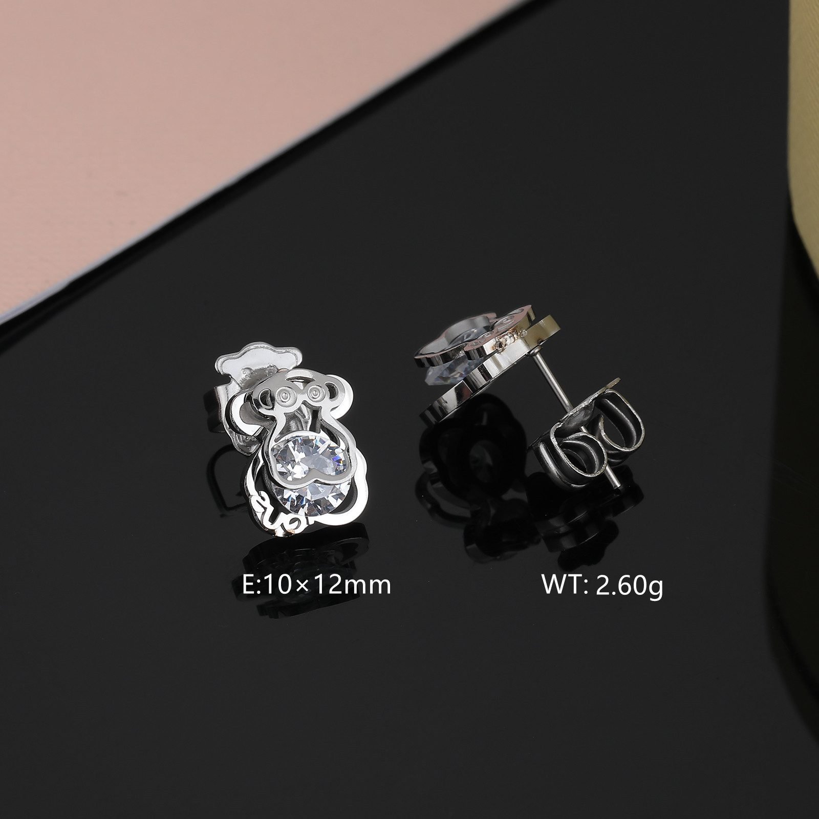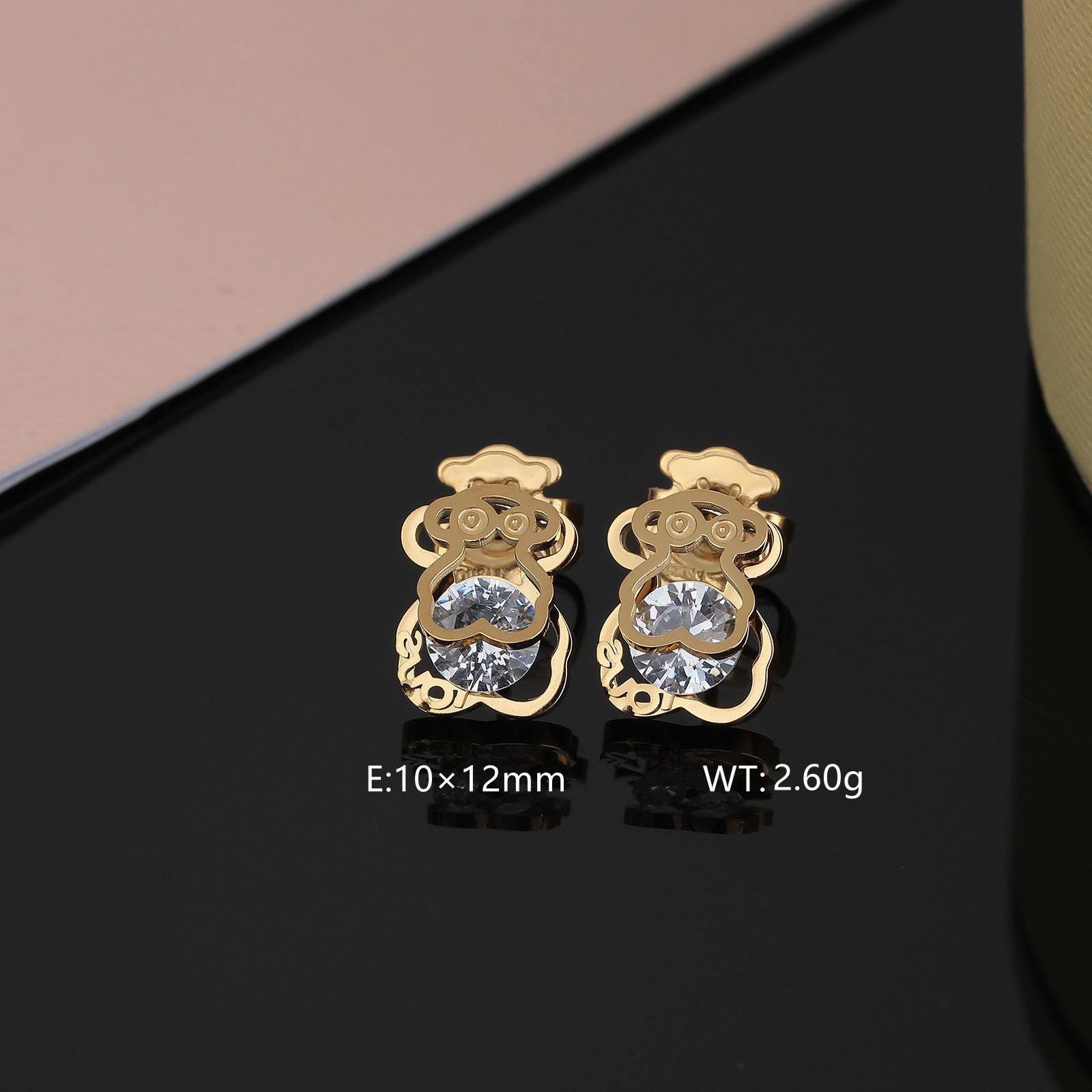 Transparent zircon inlay, dazzling: In a prominent position on the bear frame, there are one or more carefully selected transparent zircon inlays. These zircons have been finely cut to present a brilliant light like real diamonds, with high transparency and dazzling fire colors. They not only add a sense of luxury to the earrings, but also sparkle with charming radiance in the light, making it unforgettable at first glance.