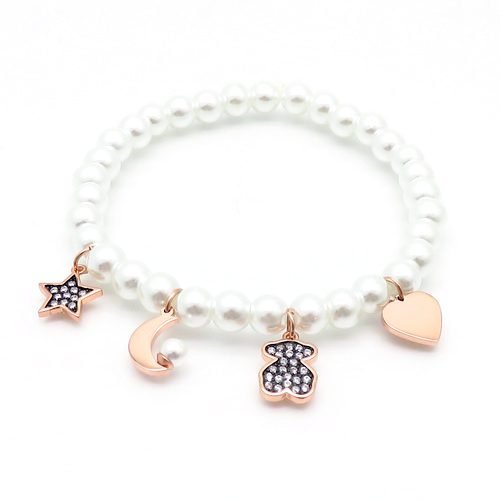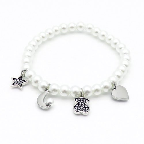 TOUS, With ingenious design, the dazzling starlight in the night sky is cleverly integrated with dreamy elements to create this 925 silver star crescent bear heart-shaped transparent zircon inlaid pearl bracelet. This bracelet is not only a fashion accessory, but also a heartfelt expression of good wishes and romantic feelings.