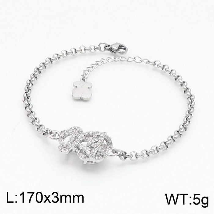 This bracelet is made of pure 925 silver as the main material, which not only ensures the quality and luster of the product, but also gives the bracelet a soft and delicate touch. 925 silver, with its high purity and excellent antioxidant properties, can maintain the beauty of the bracelet as new for a long time, making every wear a wonderful experience. The design inspiration for the bracelet comes from the iconic teddy bear image of TOUS, but this time the designer reinterprets it with more avant-garde and modern line combinations. The lines are smooth and full of tension, interweaving into a beautiful pattern. The transparent zircon embedded in the center is like scattered starlight, adding a touch of liveliness and brilliance to the entire design. The clarity of transparent zircon and the warmth of 925 silver complement each other, presenting a fresh and refined beauty. The inlay process of transparent zircons is exquisite, and each zircon has undergone strict screening to ensure its crystal clear and shining beauty. The use of micro inlay technology to embed zircon into the lines not only ensures the stability of zircon, but also showcases its brilliant radiance. The perfect combination of lines and zircon makes the entire bracelet look more exquisite and sophisticated. The chain design of the bracelet fully considers the comfort of wearing, with tight and elastic connections between the links, making it easy to adapt to wrists of different sizes. Whether it’s for daily wear or special occasions, this TOUS 925 silver transparent zircon inlaid line combination teddy bear bracelet can become a highlight on your wrist, showcasing your unique taste and fashion attitude.