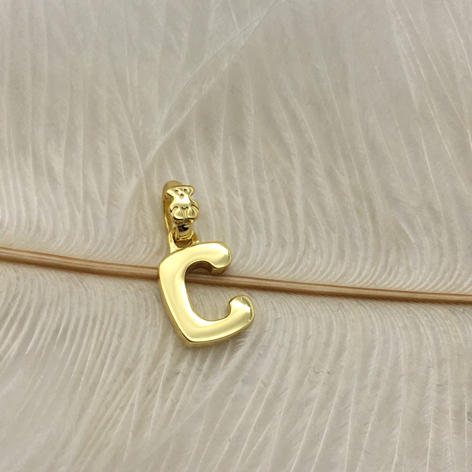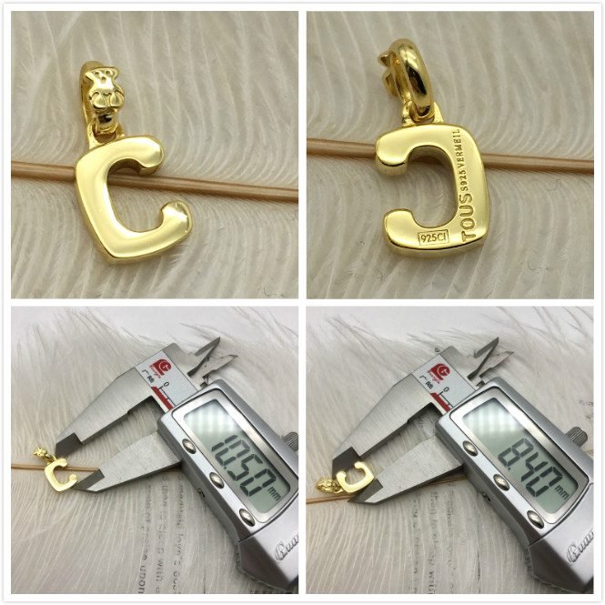 TOUS Alphabet pendant, letter C with a bear detail, made of 925 silver with vermeil coating . Size: 1.05 cm Vermeil : 18k gold plated silver.