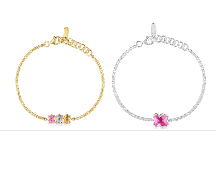 This TOUS bear charm bracelet collection features the brand’s iconic bear motif, crafted in 18K gold plating and sterling silver, each inlaid with vibrant faceted crystals. Embodying TOUS’ legacy of playful sophistication and meticulous craftsmanship, the bracelets showcase a delicate chain design and adjustable closures, making them versatile pieces suitable for stacking or standalone wear. Perfect for those who appreciate whimsical design, premium materials, and colorful accessorizing, these bracelets make a charming statement for daily styling or as a thoughtful gift.