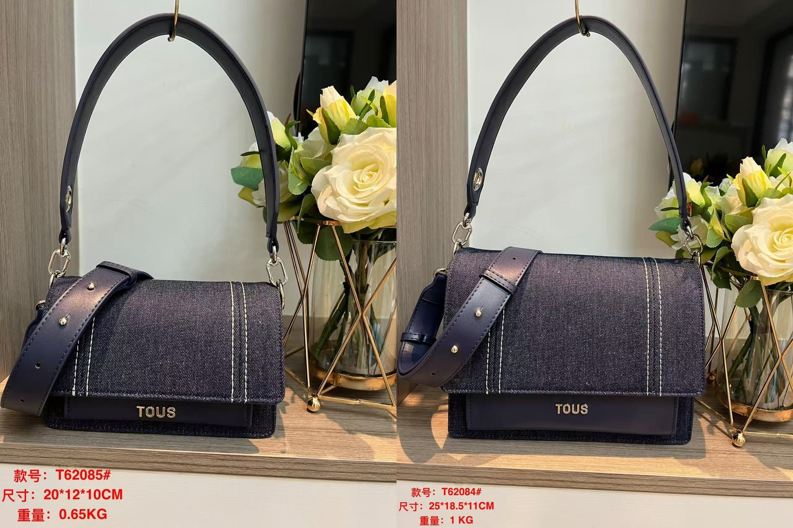 - Design Highlights: Classic denim paired with leather trim and contrast stitching for a retro-chic look. The metallic TOUS logo on the front adds brand recognition. The adjustable strap allows for versatile wear as a handbag, shoulder bag, or crossbody.