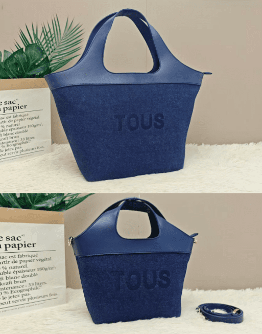 This TOUS tote collection blends denim fabric with leather accents, featuring the brand’s bold logo and dual carrying options (handheld or crossbody with the detachable strap). Available in small (22×34×30cm) and large (30×50×15×49cm) sizes, it marries laid-back denim style with refined craftsmanship. Perfect for those who want a bag that transitions seamlessly from everyday errands to weekend outings, it’s a testament to TOUS’s ability to merge casual charm with signature elegance.
