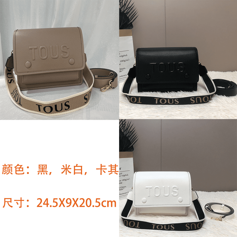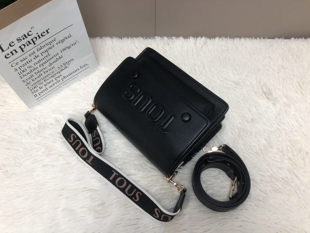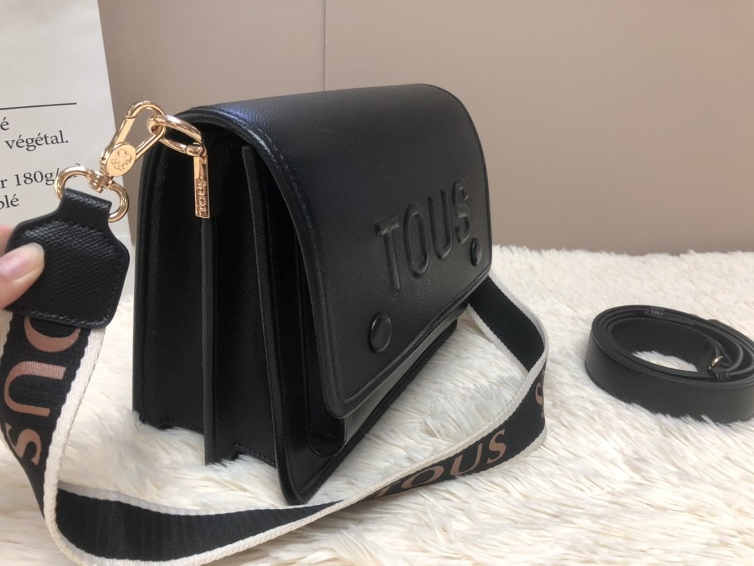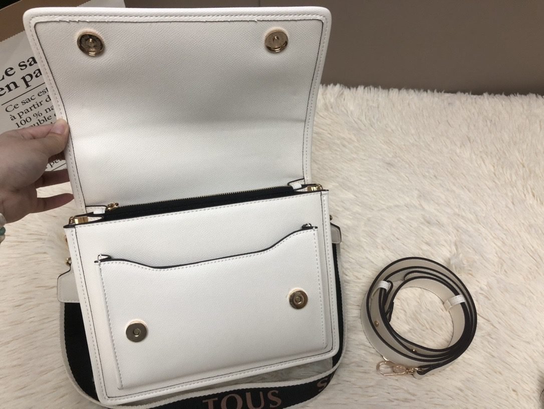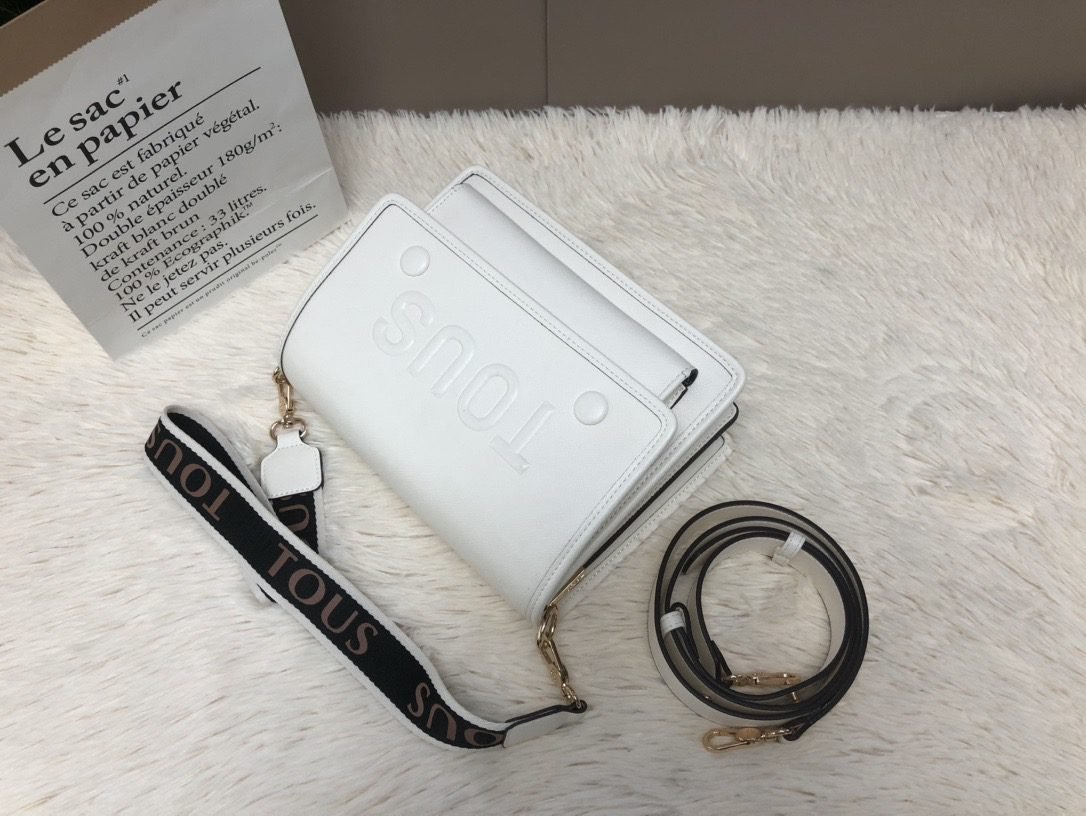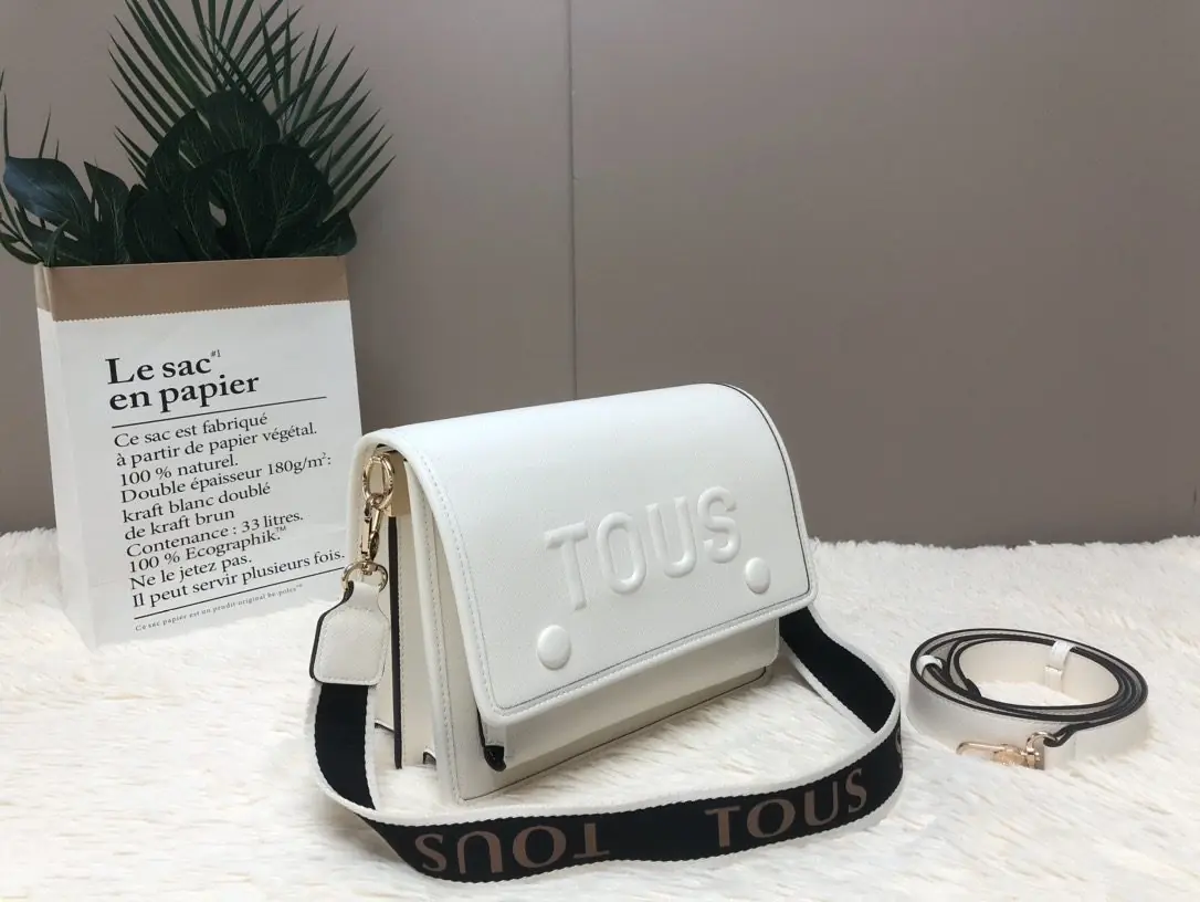This TOUS crossbody bag is crafted from premium white faux leather, with the iconic brand logo embossed on the front for a minimalist yet recognizable look. The flap design and spacious main compartment easily fit daily essentials like a smartphone and cosmetics, making it perfect for commuting or short trips.
