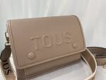 This TOUS crossbody bag is crafted from premium white faux leather, with the iconic brand logo embossed on the front for a minimalist yet recognizable look. The flap design and spacious main compartment easily fit daily essentials like a smartphone and cosmetics, making it perfect for commuting or short trips.
