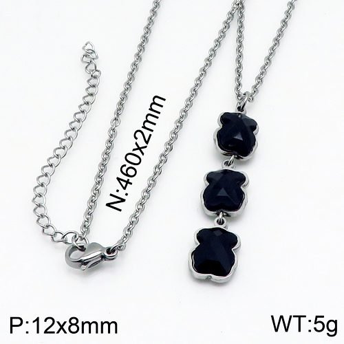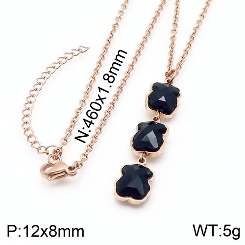 This necklace pendant is delicate and unique like an artwork, carefully selected from top stainless steel materials to ensure its toughness and long-lasting quality. It is not only a accessory, but also a symbol of your taste. The pendant is cleverly carved with three lively and cute little bears, which come from a romantic legend in Spain and symbolize the eternity of family, friendship, and love. The black appearance is both mysterious and elegant. Whether paired with casual or formal clothing, it can perfectly blend in, adding an extraordinary charm to your overall look. Wearing it is like hanging the romance and passion of Spain gently on your chest, always by your side. The length of this necklace is 46cm, and the pendant is 12x8mm.