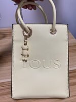 TOUS La Rue Multi tone Synthetic Leather New Popular Mini Bag. Magnetic buttons open and close. Fixed handle and adjustable and detachable crossbody shoulder strap. Featuring beautiful bear pendant details. Measurements: 20 x 16 x 6 cm.