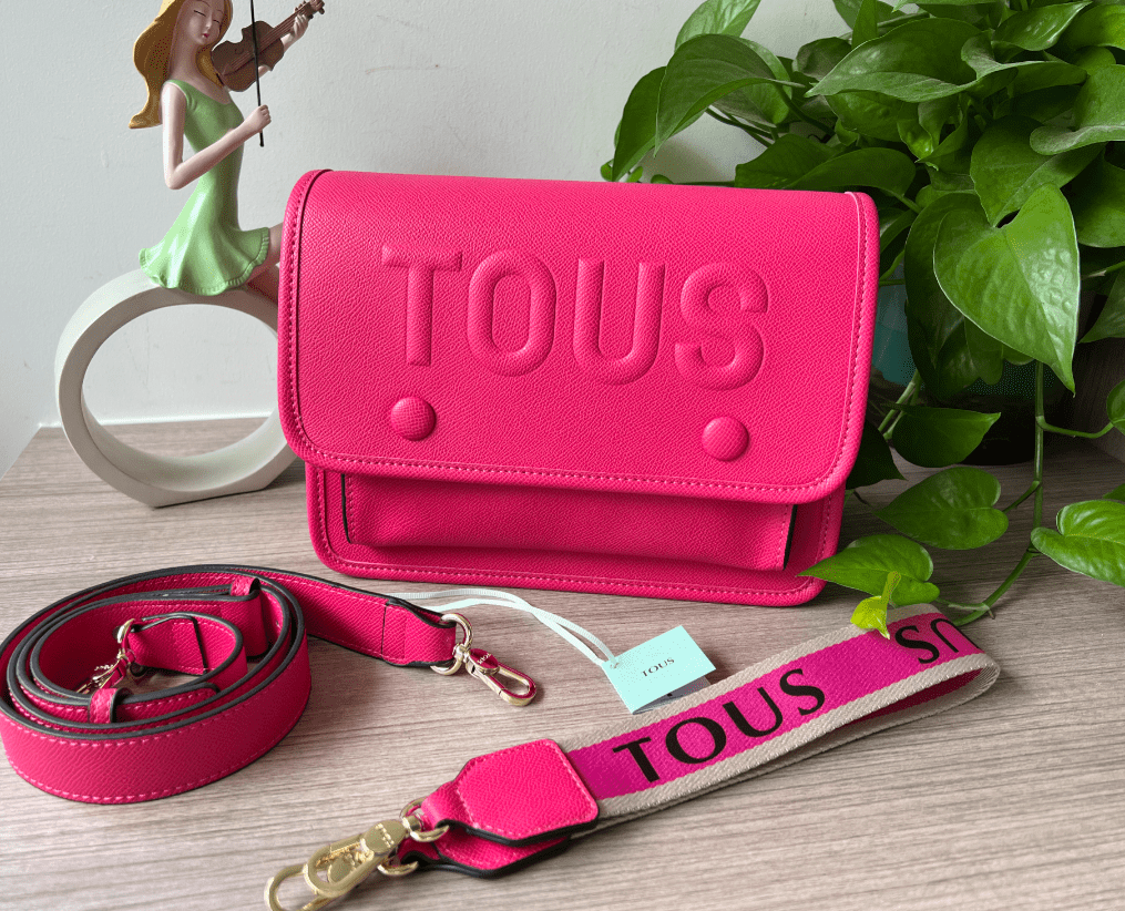 TOUS medium solid color crossbody shoulder bag. It has a three-dimensional logo embossed decoration. Two buttons open and close. Adjustable and detachable crossbody shoulder strap. Multiple colors to choose from, with multiple layers inside. Measurements :24*10*19cm