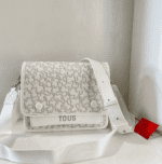 Tous medium white and gray printed crossbody handbag. There are multiple inner pockets, magnetic buckle openings, adjustable and detachable shoulder straps, and a handbag inside. Measurements: 24.5 * 10 * 20.5cm