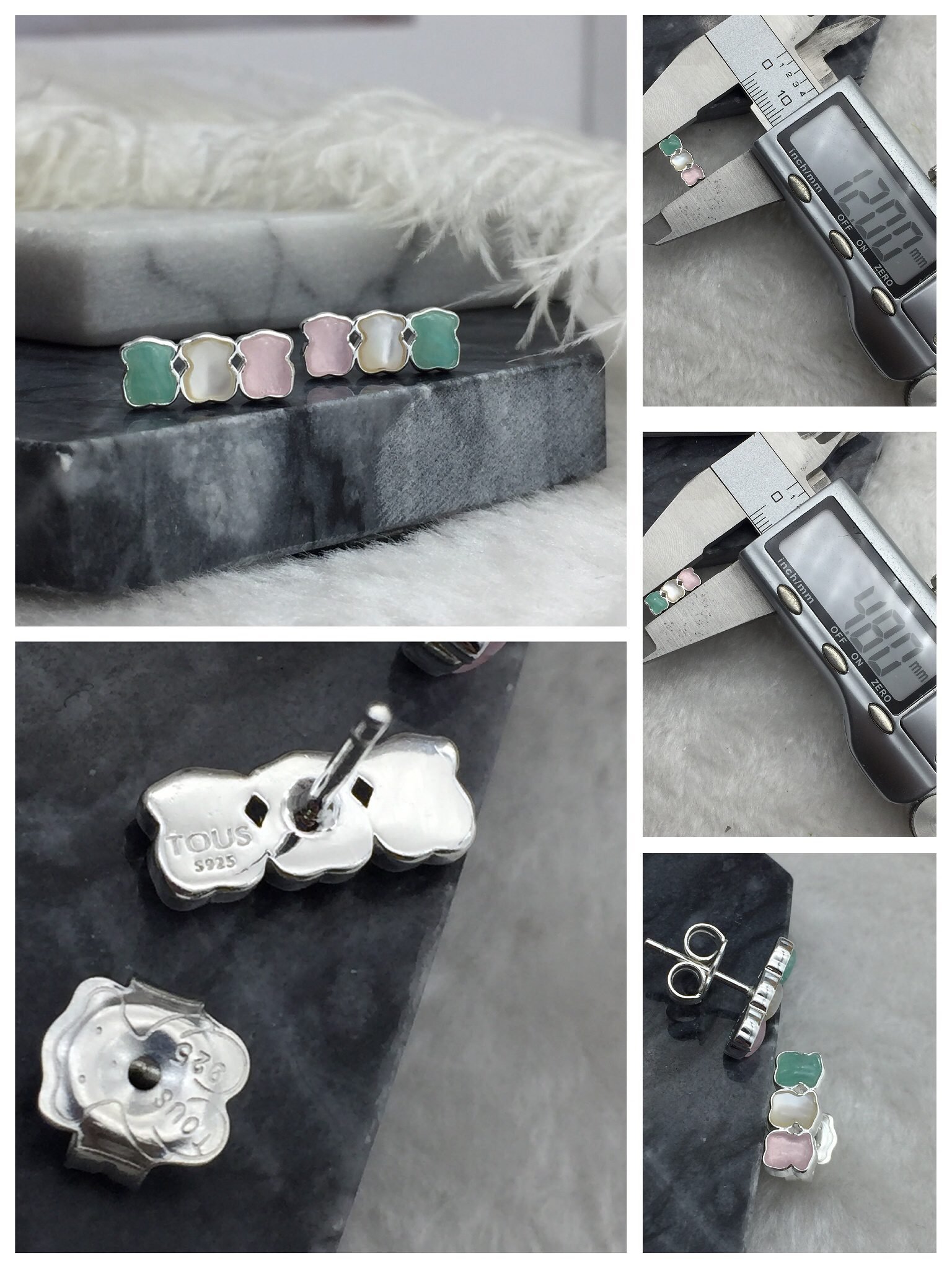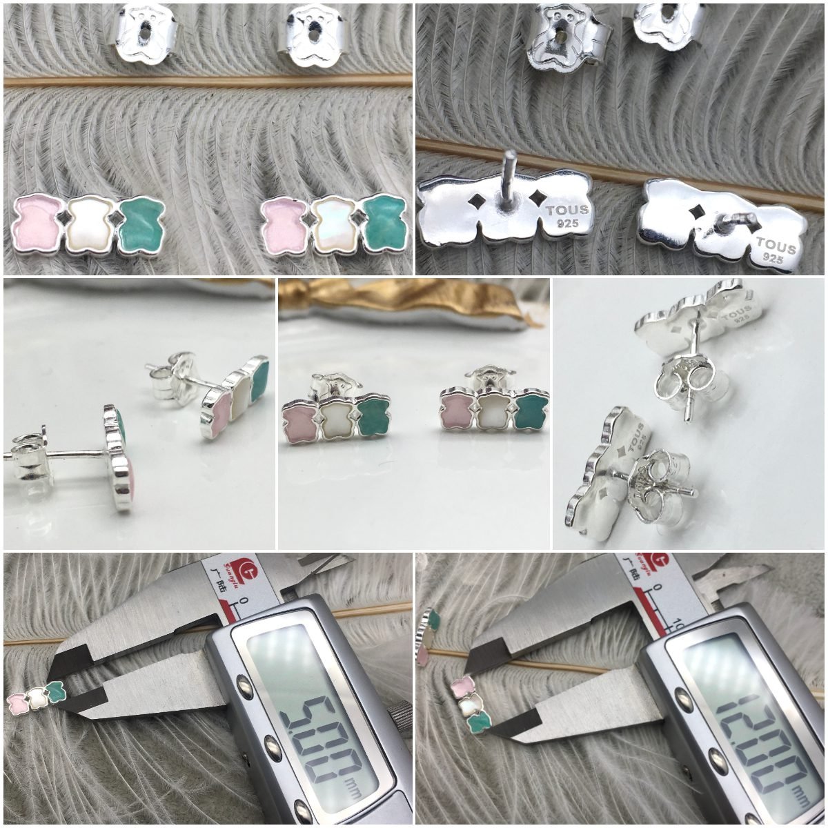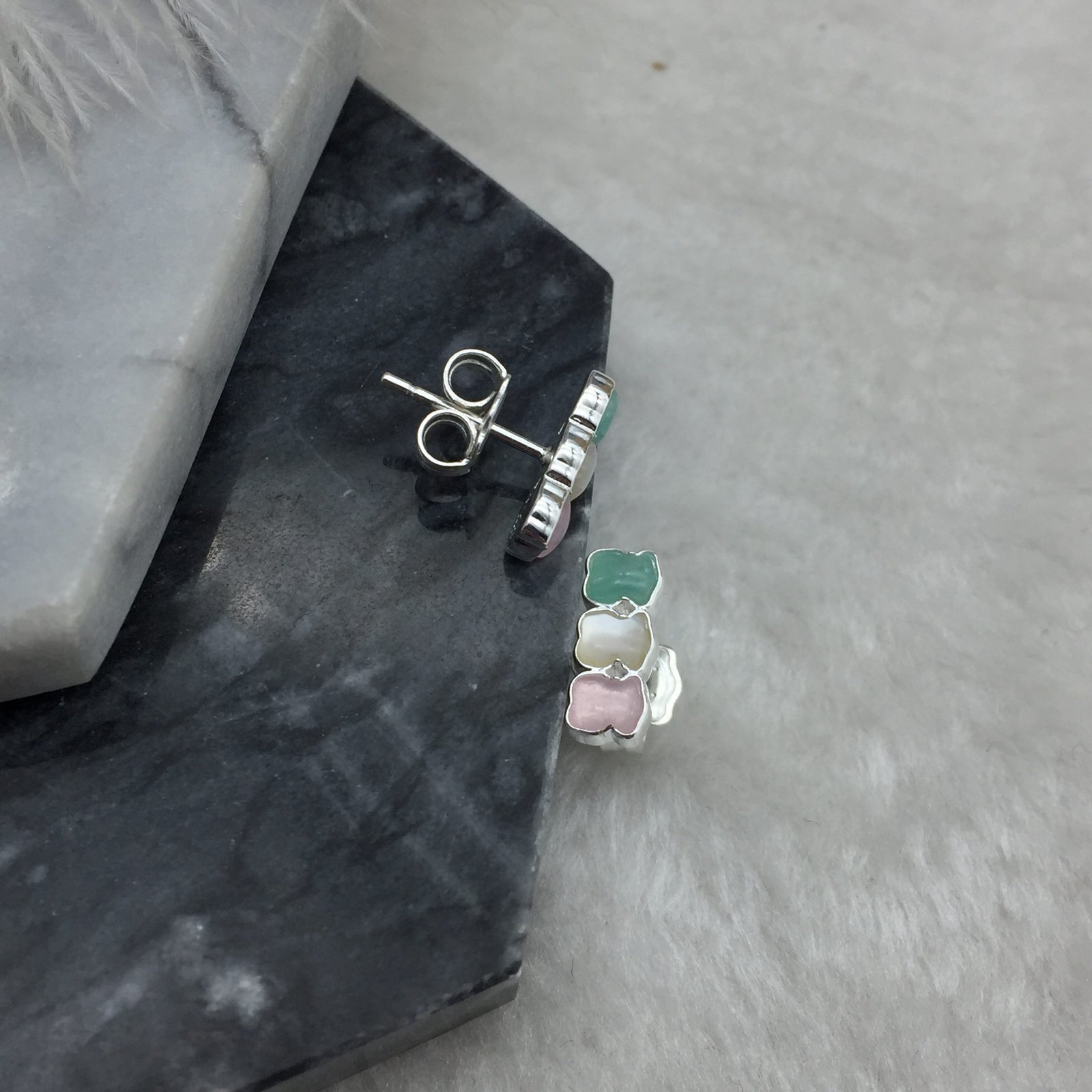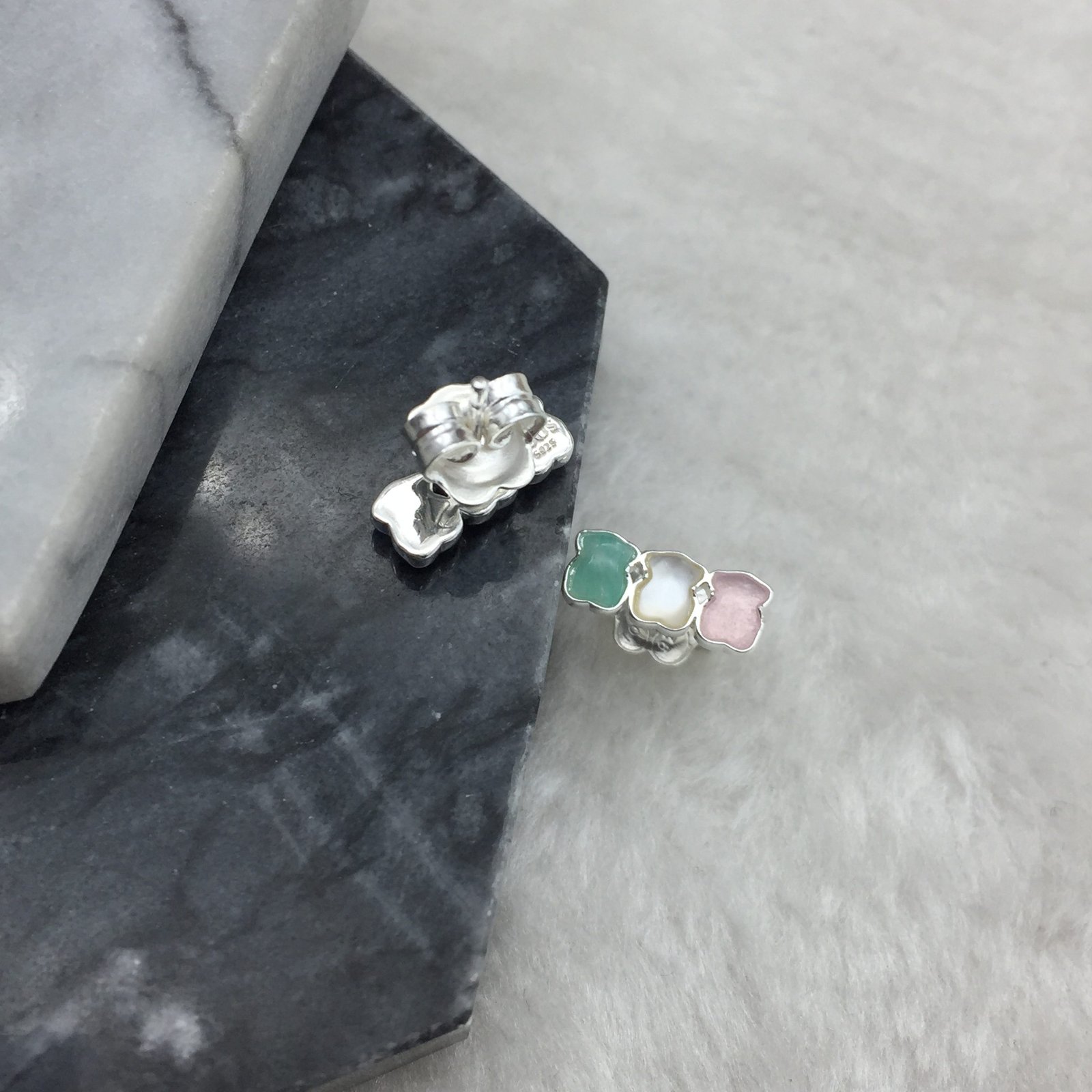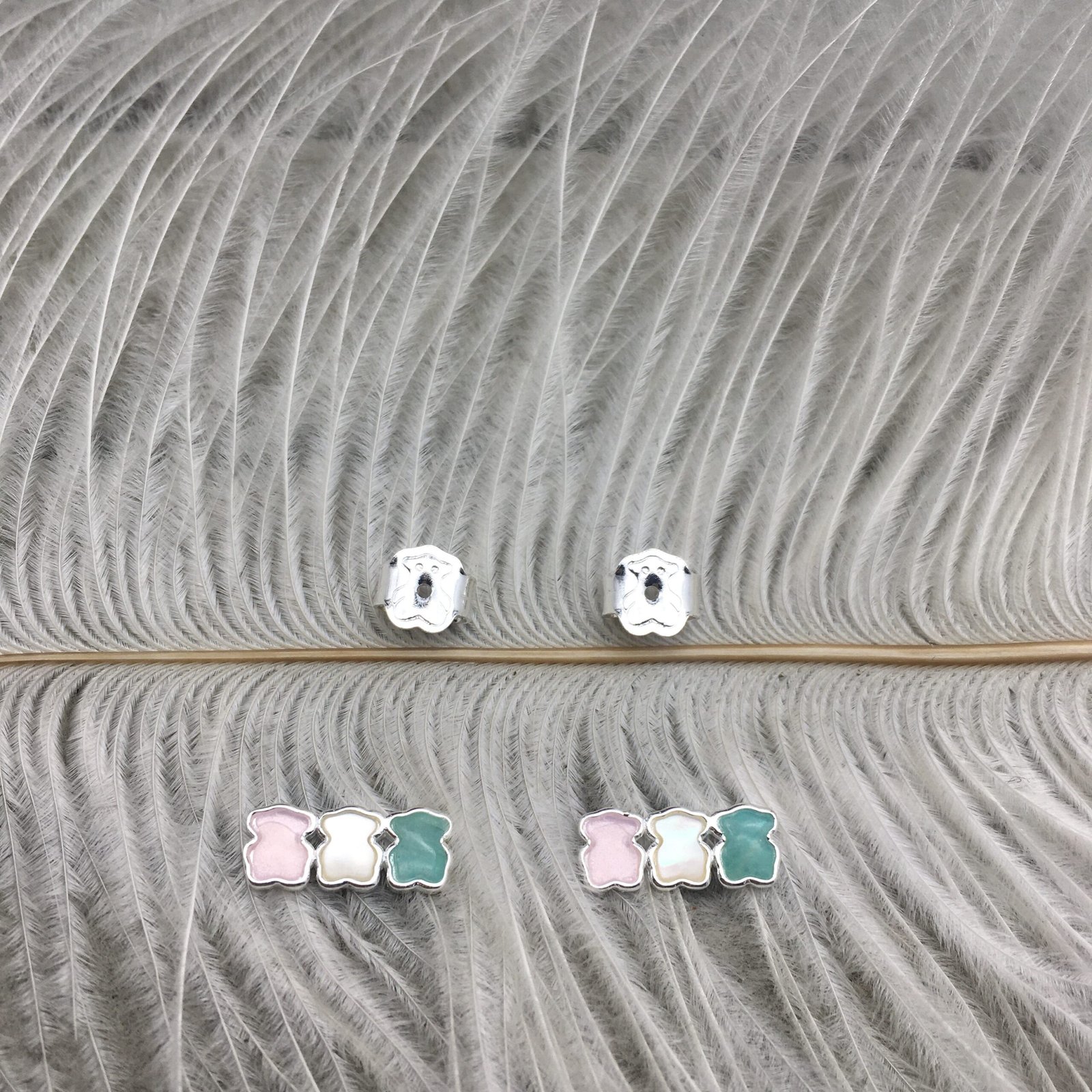 TOUS Mini Color earrings made of sterling silver with 3 bears made of pink quartzite, mother of pearl and amazonite. With a fixing pin. Size: 1.2 cm.