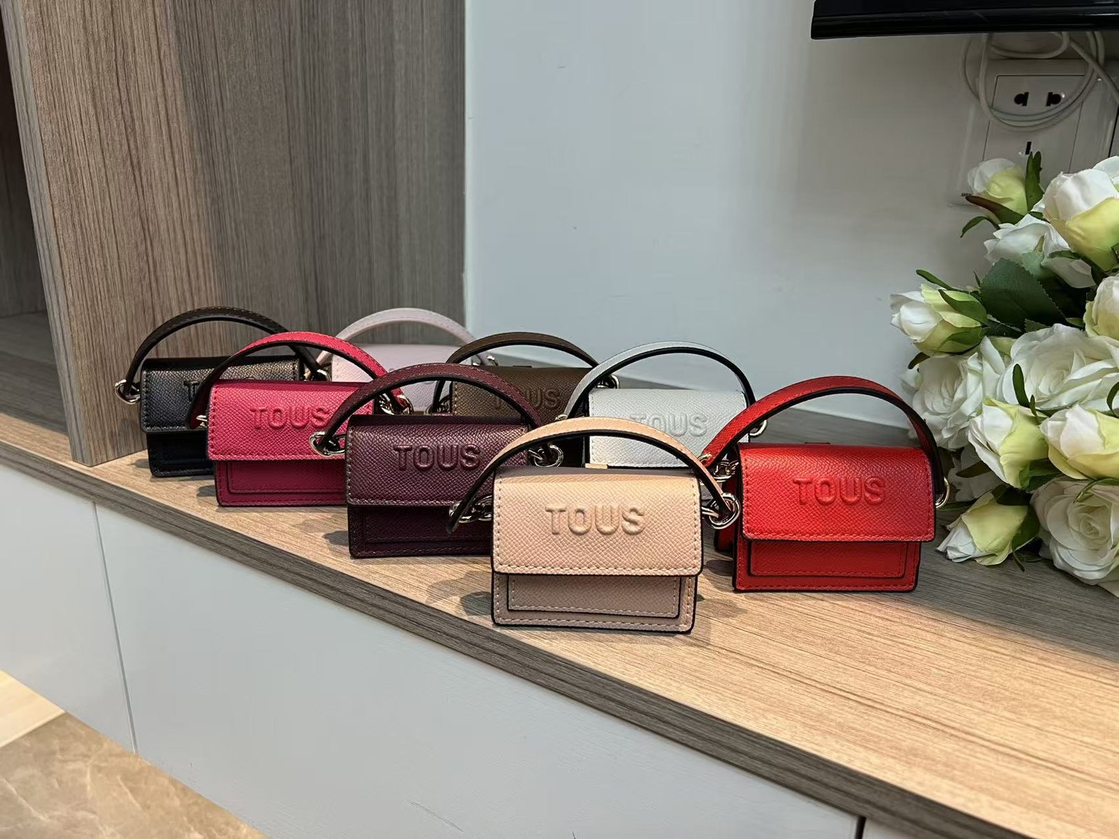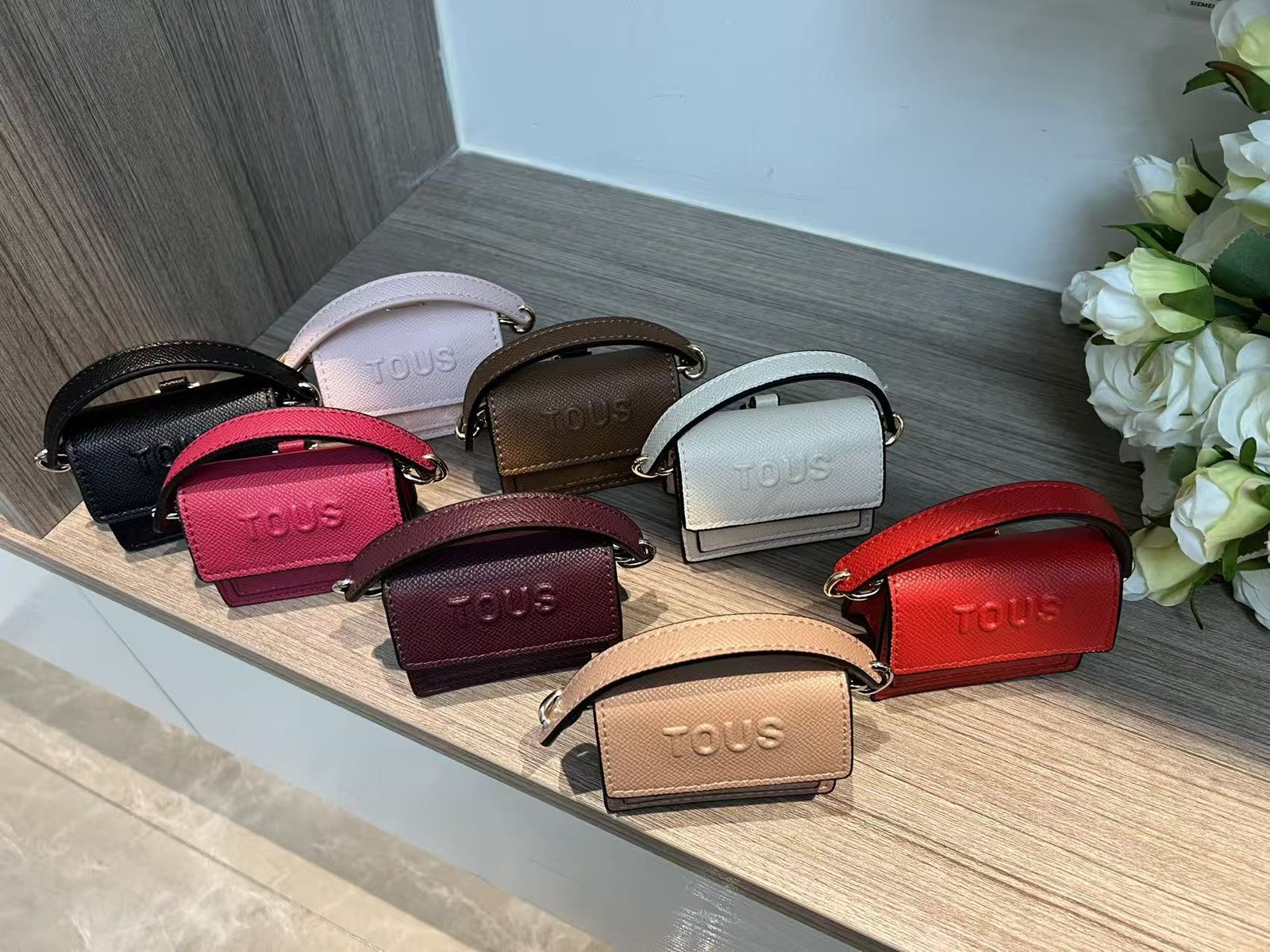 This is a TOUS mini tote bag, centered on the 3D embossed logo design, made of delicate leather. With a compact size of 8.54.56.5CM, it’s portable and lightweight; available in multiple colors such as nude pink, brown, and red, suitable for different style pairings. The flap design is paired with a mini handle, which can store small items like keys and change. It’s both a practical personal storage item and a bag accessory to add fashion details, making it a light luxury exquisite gadget for daily commutes and outings.