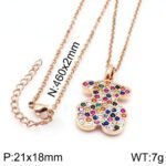 This necklace pendant is a masterpiece that combines modern design with traditional craftsmanship. Using high-quality stainless steel as the main material ensures the durability and corrosion resistance of the product. The image of the little bear on the pendant is lifelike, full of childlike fun and vitality. What’s even more attractive is that the little bear is adorned with multiple colorful gemstones, each shining brightly like the brightest star in the night sky. The image of the little bear on the pendant is designed very cute, with rounded lines and exquisite details that make the little bear look lifelike. This pendant is not only suitable for women to wear, but also loved by male consumers. The inlay of colored gemstones is a major highlight of the teddy bear necklace pendant. These gemstones not only add color to the pendant, but also make the entire pendant look more exquisite and luxurious. The length of this necklace is 46cm, and the pendant is 21x18mm.
