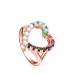 TOUS San Valentín Heart ring in rose silver vermeil with pearls, turquoise, tsavorite, orange sapphire, ruby, amethyst and spinels. Heart size: 1.6 cm.