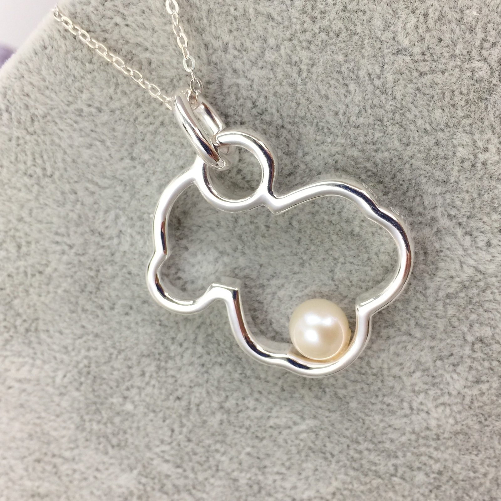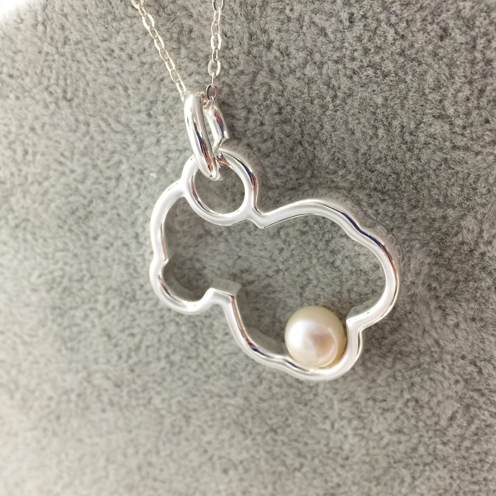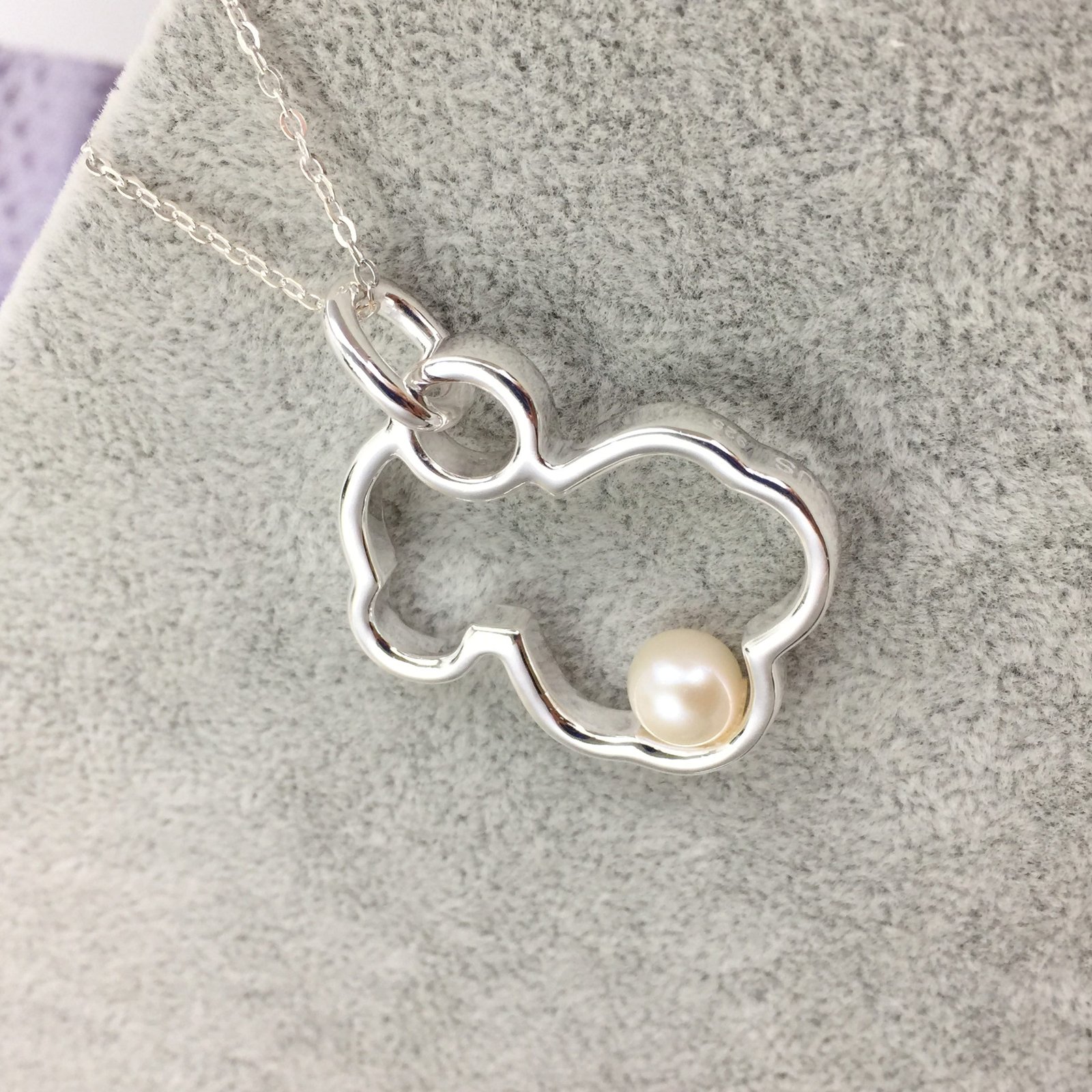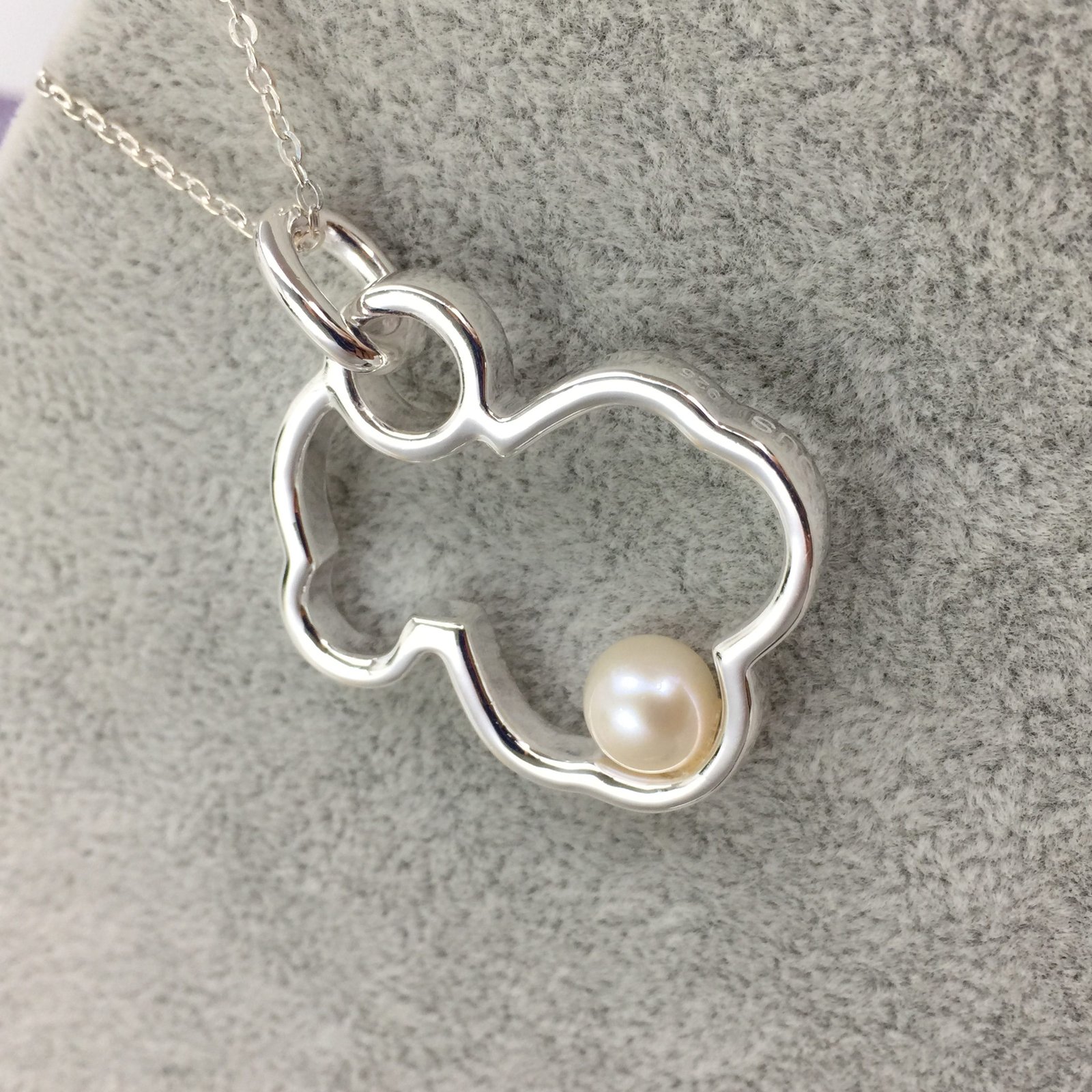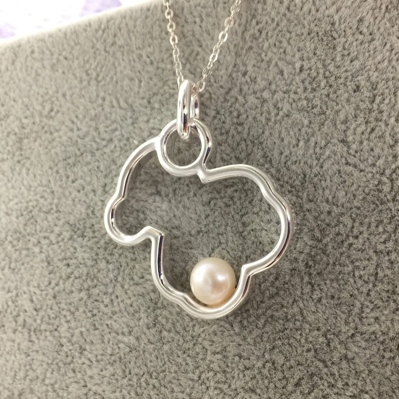 TOUS Silueta pendant, silver with pearls. Size: 2.9 cm. Pearl: 0.7 cm.