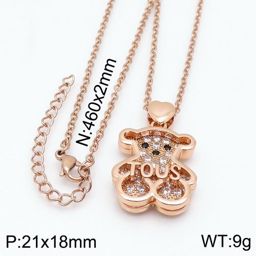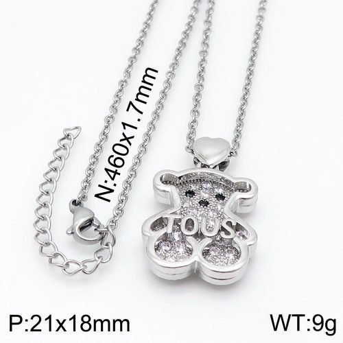 The pendant design is themed around a teddy bear, with a lifelike image full of cuteness and fashion sense. The letter element may be part of the pendant design, and consumers can choose their preferred letters for customization to showcase individuality and uniqueness. The gemstones are embedded in specific parts or letters of the teddy bear, making the pendant shine brightly in the light and full of luxury. Made of high-quality metal and gemstone materials, this pendant ensures its durability and beauty. This pendant is perfect for daily wear, showcasing different styles whether paired with casual or formal attire. Its exquisite size and fashionable feel make it an excellent choice for daily wear. The length of this necklace is 46cm, and the pendant is 21x18mm.