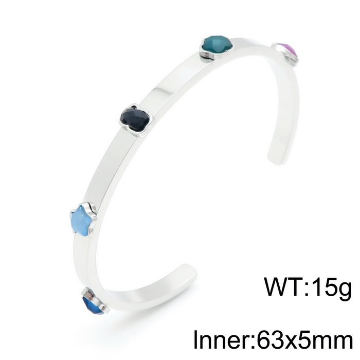 The highlight of the bracelet lies in its carefully inlaid colorful zircon stones. These zircons have been carefully selected and cut, presenting a brilliant and colorful light, like the brightest stars in the night sky, dazzling and dazzling. Zirconia of different colors interweave together to form a unique graphic design, showcasing both fashion and artistic charm. The graphic design inspiration of the bracelet comes from the fusion of modern art and traditional aesthetics. The clever combination of smooth lines and geometric shapes creates a simple yet unique pattern. This pattern not only complements the colorful zircon, but also highlights the overall beauty and fashion atmosphere of the bracelet. Accurately embed each zircon on the bracelet. Both the arrangement of zircons and the polishing of bracelets demonstrate extraordinary craftsmanship. The wearing experience of the bracelet is excellent, and its smooth line design can fit the contour of the wrist, bringing a comfortable and seamless wearing experience. At the same time, the colorful zircon sparkles with enchanting brilliance under the illumination of light, adding a unique charm and charm to the wearer. This bracelet is suitable for young women who pursue fashion, personality, and luxury. Whether paired with casual wear or formal attire, it can showcase the wearer’s unique taste and temperament. It is not only a fashion accessory, but also a display of lifestyle attitude, making the wearer stand out among the crowd and become the focus.