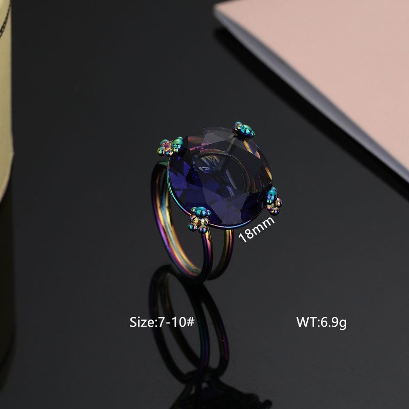 Colorful styles, showcasing individuality: The biggest highlight of this ring series is its colorful color matching. In addition to the classic deep blue zircon, it also incorporates stainless steel materials in various colors such as rose gold, platinum, and black, as well as gemstone embellishments in different colors such as pink, green, purple, etc., adding infinite possibilities and choices to the ring. Each ring has a unique color combination and style characteristics, allowing wearers to choose according to their preferences and occasion needs, showcasing their personal charm.