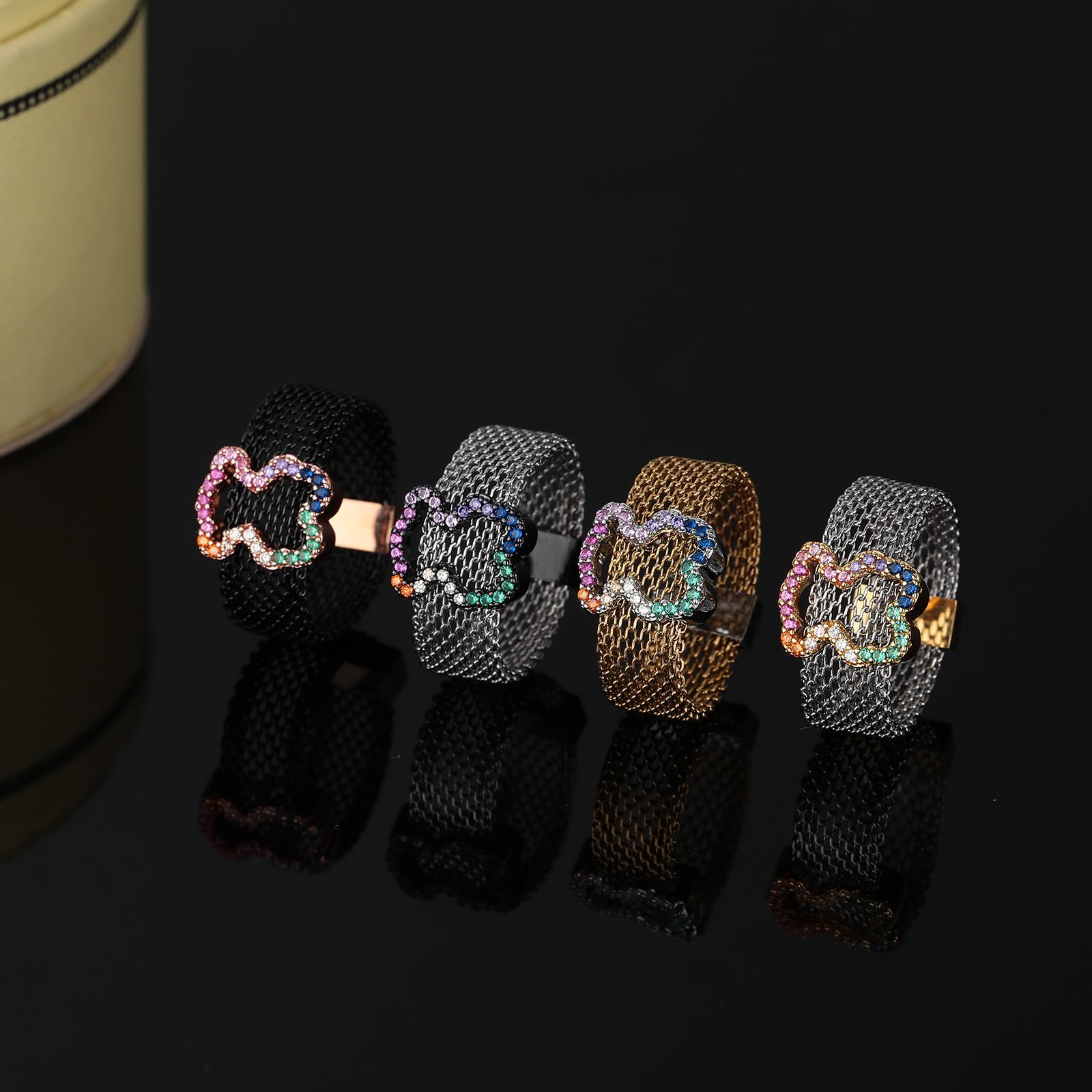 TOUS stainless steel frame teddy bear colorful zircon inlaid mesh ring is a jewelry accessory that combines fashion, delicacy, and personalization. It is framed with high-quality stainless steel and incorporates colorful zircon inlay and bear elements, bringing a visual feast to your fingertips. Choose it so that every move and gesture you make radiates a charming radiance and confidence.