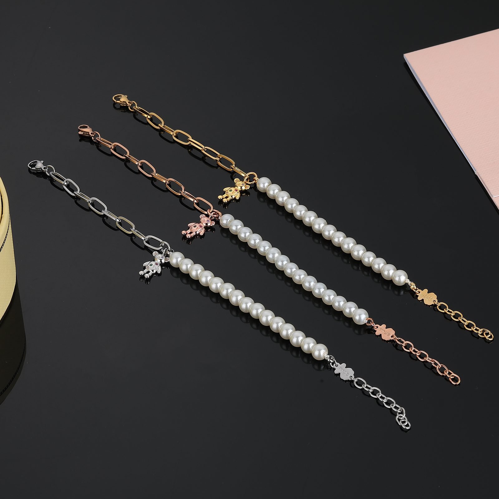 Be the first to review “TOUS Stainless Steel Half Chain Half Pearl Three Dimensional Bear Bracelet” Cancel reply