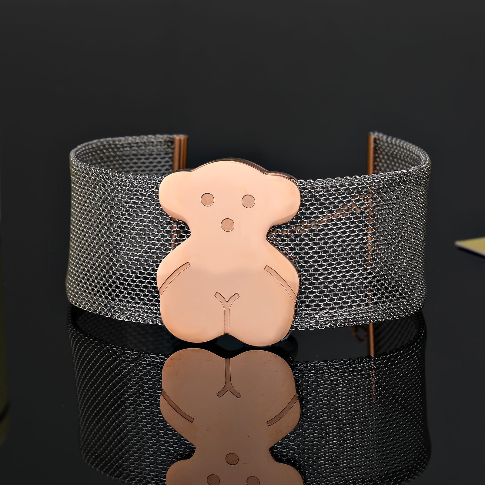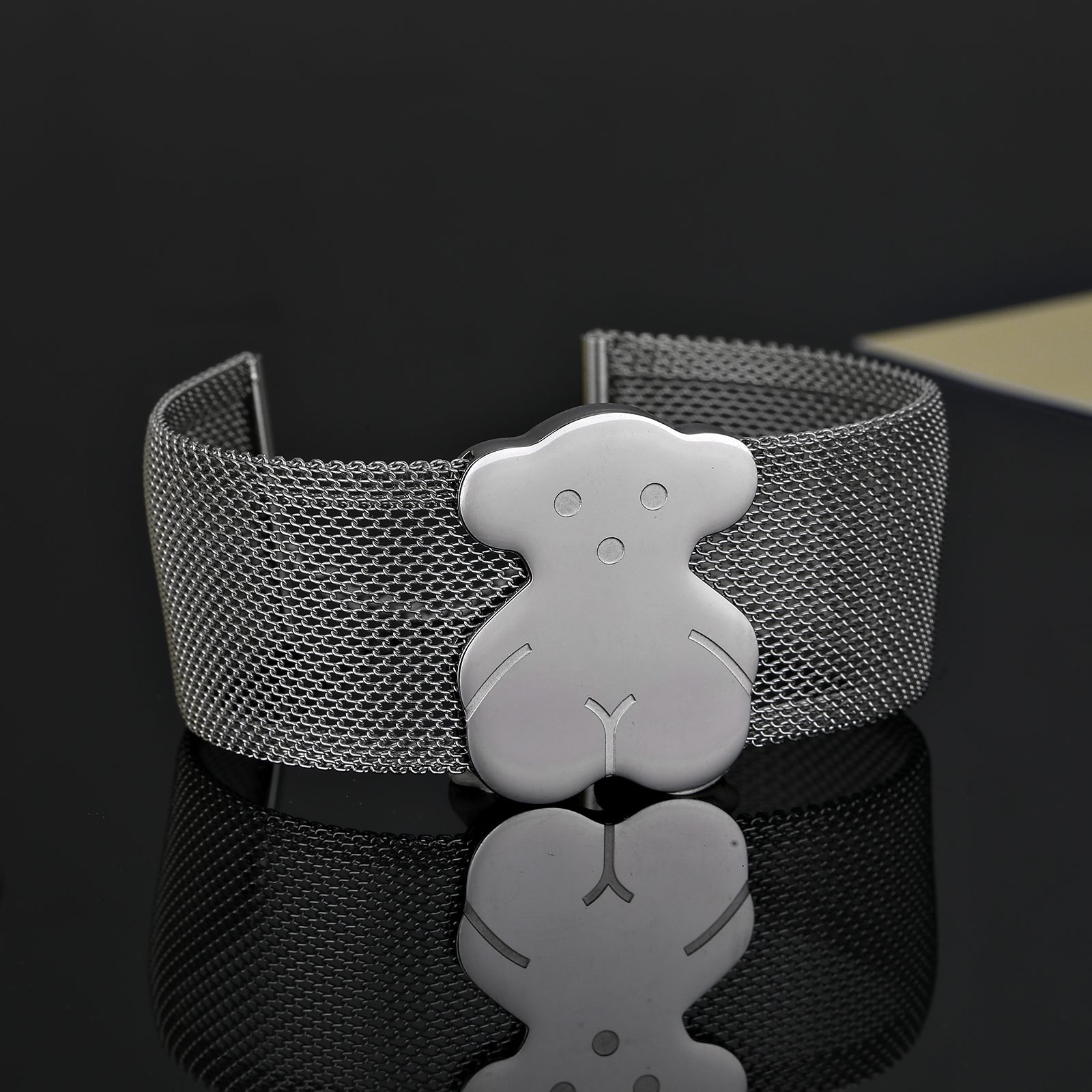 The use of high-quality stainless steel as the main material ensures the durability and corrosion resistance of the bracelet. The combination of toughness and lightness of stainless steel allows wearers to enjoy a comfortable and burden free wearing experience while enjoying beauty. Its unique cold luster shines brightly under the illumination of light, displaying extraordinary texture. The bracelet adopts a wide chain design, combined with delicate hollow craftsmanship, creating a transparent and layered visual effect. The hollowed out patterns are arranged in a staggered manner, showcasing the designer’s ingenuity and giving the bracelet more flexibility and vitality. The wide chain design not only showcases the wearer’s fashion taste, but also makes the bracelet fit more closely to the wrist when worn, showcasing an elegant temperament. Against the backdrop of the hollowed out wide chain, a delicate Spanish teddy bear becomes the finishing touch of the bracelet. As an iconic element of the TOUS brand, this little bear has won the love of countless people with its adorable and silly image. It seems to have life, jumping and playing between the wrists, bringing endless joy and happiness to the wearer. The carving process of Little Bear is delicate and meticulous, and every detail reveals the brand’s exquisite craftsmanship and ultimate pursuit of quality. From the selection of stainless steel materials to the design of hollow patterns, to the carving and inlaying of Spanish bears, every step embodies the hard work and wisdom of TOUS craftsmen. They meticulously crafted every detail to create this flawless bracelet. Every part of the bracelet reveals the brand’s ingenuity and persistent pursuit of quality. This TOUS stainless steel hollow wide chain Spanish bear bracelet has become a darling of the fashion industry with its unique design style and excellent quality. Whether paired with casual clothing or formal attire, it can be easily handled, showcasing the wearer’s unique fashion taste and personality. It is not only the finishing touch of daily dressing, but also a fashionable accessory for you to express yourself and showcase your personality. Choosing TOUS stainless steel hollow wide chain Spanish bear bracelet is a perfect fusion of beauty, fashion, and personality. Let this bracelet become a unique scenery on your wrist, accompanying you through every warm and beautiful moment.