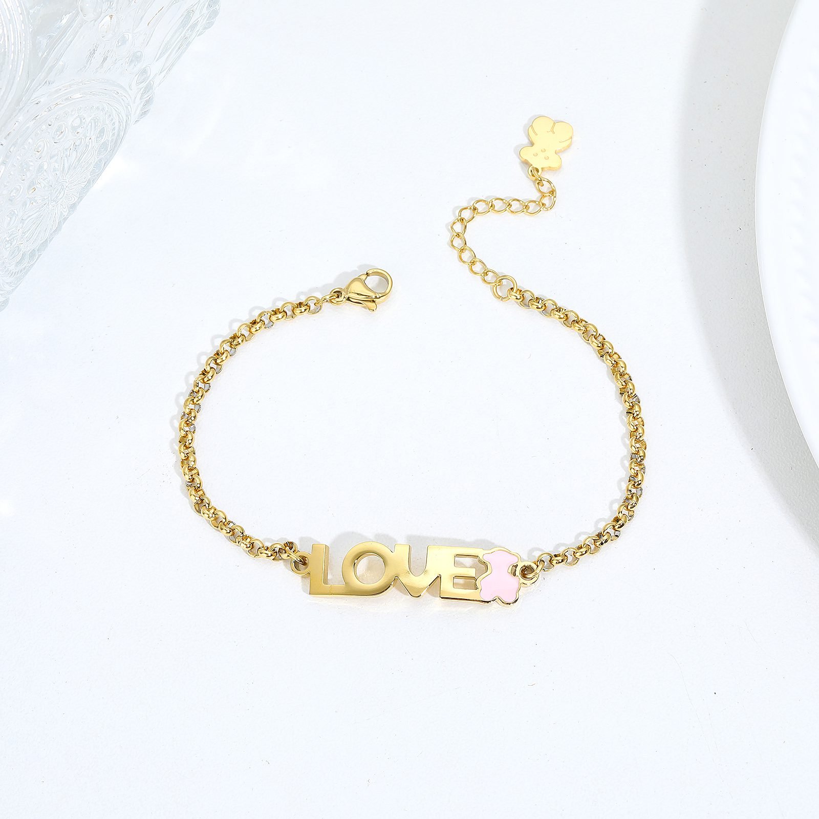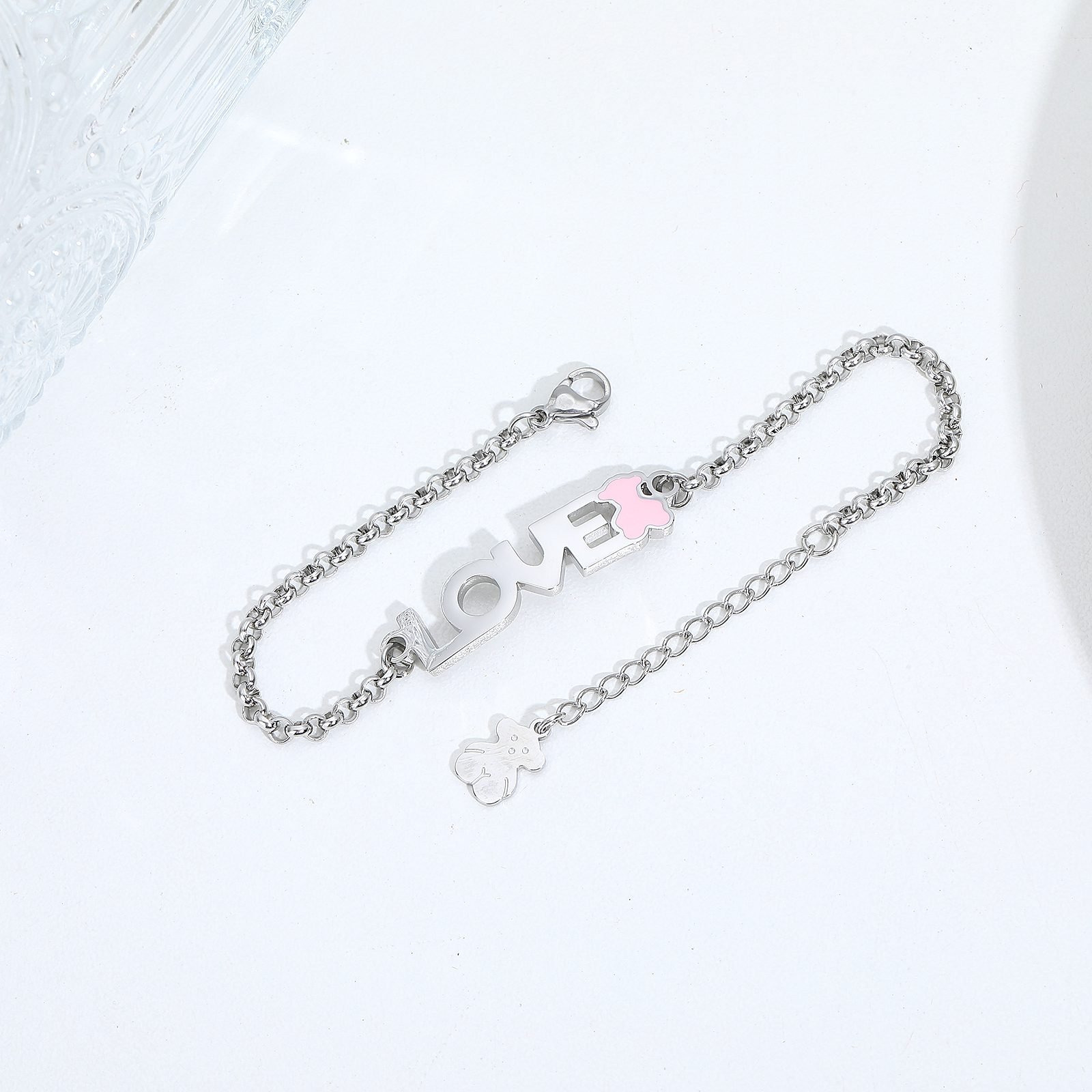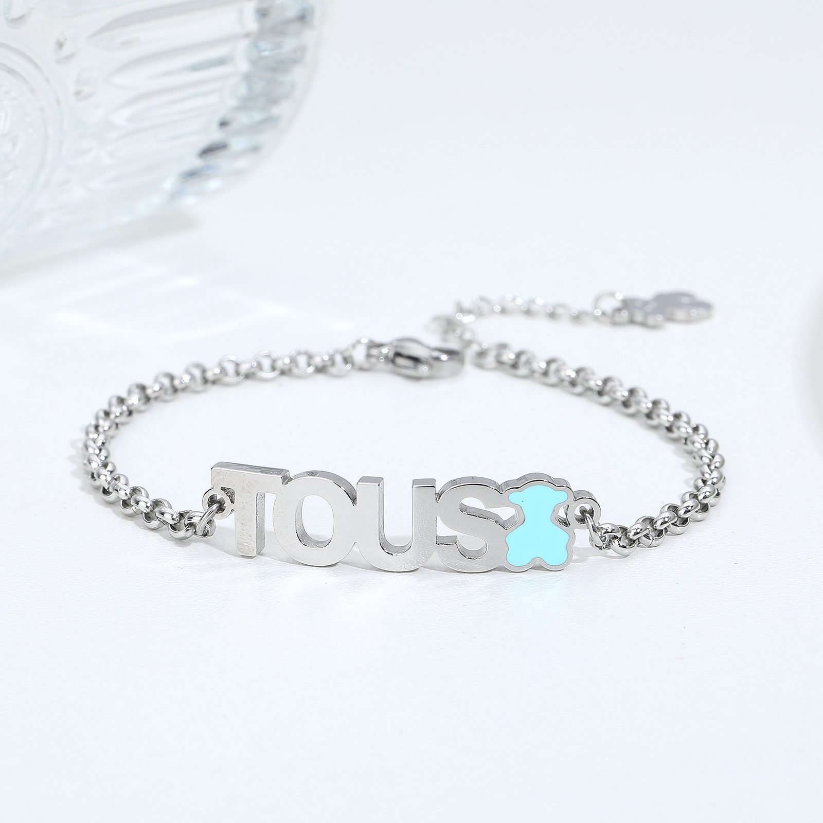 Immersed in the unique romantic and warm atmosphere of the TOUS brand, we present to you this exquisite stainless steel “Love” necklace and blue pink teddy bear bracelet set. This is not just an accessory, but also a gift that conveys love and beautiful blessings, suitable for giving to loved ones or rewarding oneself. Made of high-quality stainless steel, the necklace ensures long-lasting comfort and luster with its excellent corrosion resistance and lightweight texture.