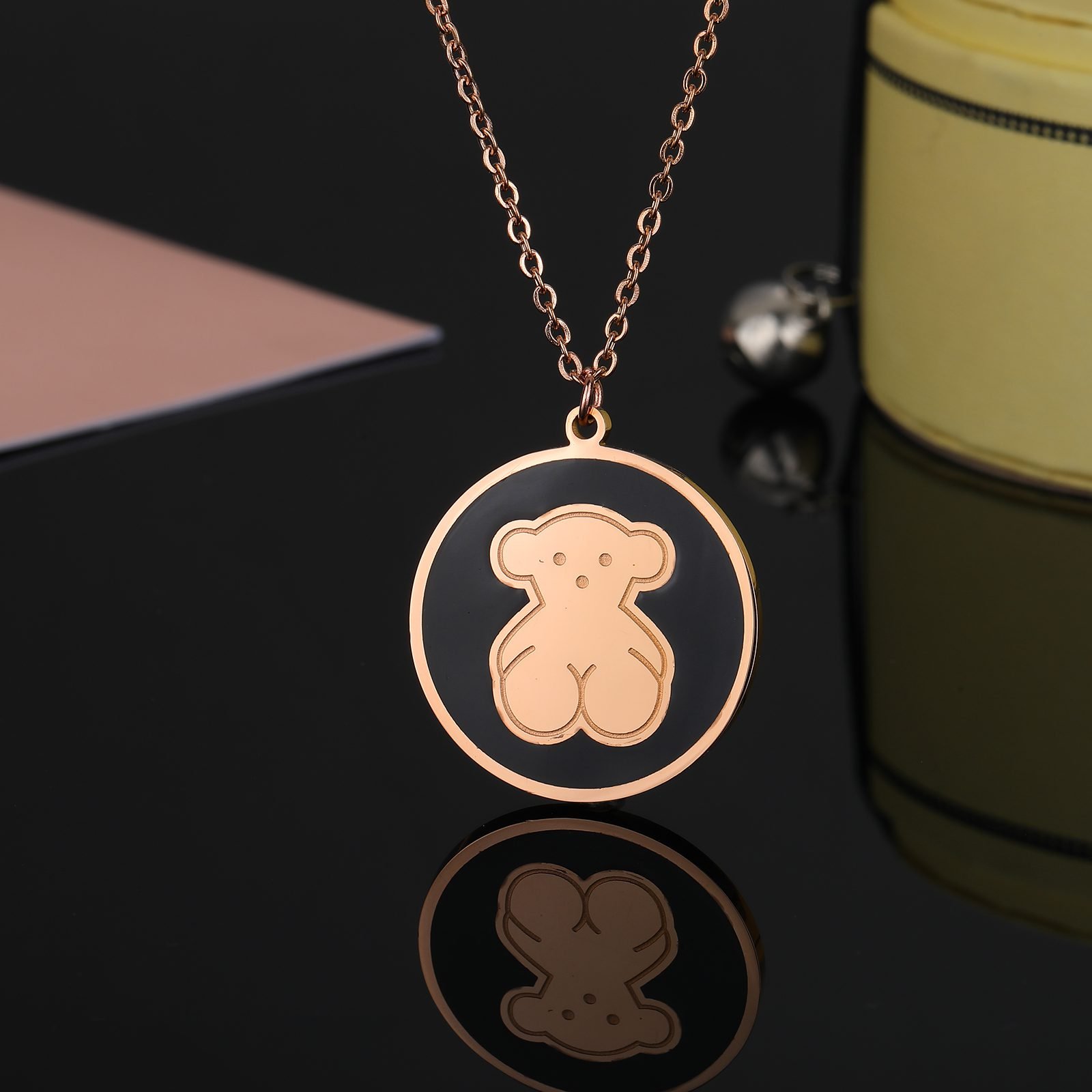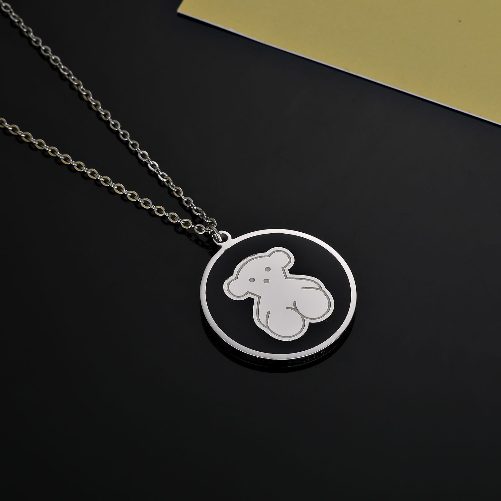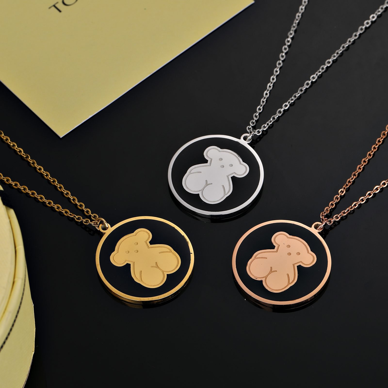 The use of high-quality stainless steel as the main material ensures the durability and lightweight comfort of the pendant. The unique metallic luster of stainless steel collides with the deep texture of the black disc, creating a unique visual impact. The black disc not only adds a sense of mystery and elegance to the pendant, but also cleverly highlights the cuteness and vividness of the bear image. The center of the pendant is a delicate black disc, which resembles a miniature universe, providing a stage for the little bear to showcase itself. The edges of the black disc are finely polished to present a rounded and smooth texture, perfectly integrated with the stainless steel frame, showcasing a harmonious and unified beauty. In the center of the black disc, a cute Spanish bear stands leisurely. The image of the little bear is vivid and lifelike, with pure and happy eyes, as if telling a story about love and dreams. Every detail of Little Bear has been carefully crafted, and the posture of its limbs demonstrates TOUS brand’s relentless pursuit of quality and design. The design of the entire pendant is simple yet exquisite, without too many complicated decorations, but it can show extraordinary taste and style in the details. The durability of stainless steel and the deep elegance of the black disc complement each other, making this pendant a fashionable item that is suitable for both daily wear and special occasions. Whether it’s leisure time, romantic dates, business events, or dinner celebrations, this TOUS stainless steel black circular Spanish bear necklace pendant can make the wearer the center of attention. It not only showcases the wearer’s unique taste and personal charm, but also adds an irreplaceable highlight to the overall look. Choosing the TOUS stainless steel material black disc Spanish teddy bear necklace pendant is choosing a pursuit and longing for a better life. Let it accompany you through every important moment, witnessing your growth and transformation. TOUS, Illuminate life with creativity and shine with your unique brilliance.