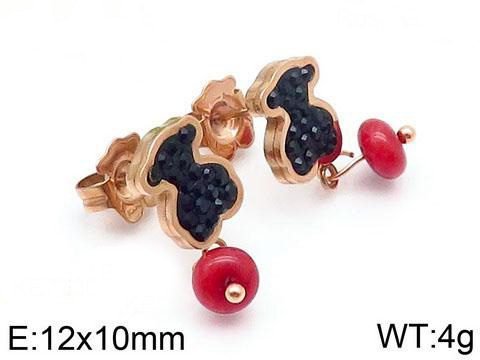 Surrounded by black zircon stones, a cute and adorable Spanish teddy bear pattern comes to life vividly. The little bear is presented with exquisite carving techniques, with smooth lines and vivid expressions, as if showcasing its charm to the world in a playful and adorable manner. On the chest of the little bear, a brilliant red round zircon became the finishing touch, adding a touch of vitality and enthusiasm to the earrings.