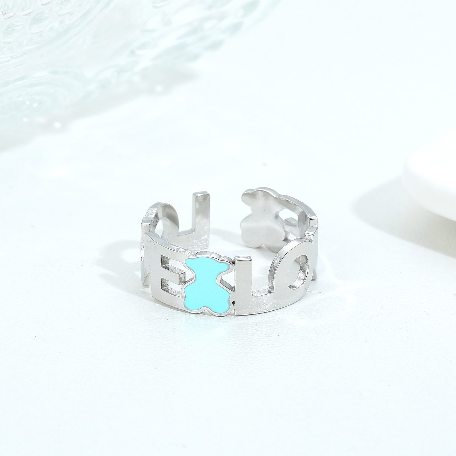 Design details to showcase quality: The design of the entire ring emphasizes the combination of details and quality. From the outline of the blue bear to the delicate carving of the LOVE letter, every step is carefully polished and polished to ensure that the ring presents the best gloss and texture.