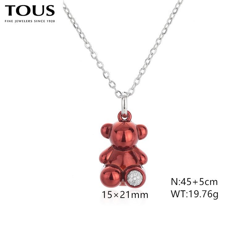 Home JEWELRY Stainless Steel Bear Stainless Steel Bear Necklaces TOUS stainless steel material bright red gemstone Spanish bear