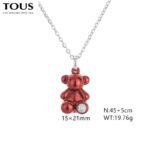 TOUS jewelry uses high-quality stainless steel as the main material, and through exquisite craftsmanship, the surface presents an ultimate luster. The sturdy and durable properties of stainless steel ensure the durability and stability of the jewelry, while also providing a comfortable and burden free wearing experience for the wearer. The most eye-catching aspect is the bright red tone of the jewelry. This unique red color is as passionate and unrestrained as flames, injecting vitality and passion into jewelry. After special treatment, the stainless steel surface presents a bright red luster, making the entire jewelry more fashionable and eye-catching. As the mascot of the TOUS brand, the image of the Spanish bear is perfectly displayed in this accessory. The round and cute shape, with smooth and vivid lines, seems ready to share happy moments with the wearer at any time. The bright red Spanish bear is even more unique, inheriting the brand’s classic elements and injecting a new fashionable atmosphere. In front of the feet of the Spanish bear, there is a brilliant gem set. This gemstone has been carefully selected and polished, shimmering with charming light, forming a sharp contrast with the bright red Spanish bear, adding a touch of brightness to the entire jewelry. The embellishment of gemstones not only enhances the texture of the jewelry, but also makes the entire design more noble and exquisite. TOUS stainless steel bright red gemstone Spanish bear jewelry is lightweight and exquisite, making it a highlight in the design whether worn on the neck or wrist. The bright red appearance emits a charming luster in the sunlight, making people unable to resist taking a few more glances. Whether it’s for daily wear or attending important occasions, this accessory can add a touch of fashion and personality to your look. The length of this necklace is 45+5cm, and the pendant is 15x21mm.