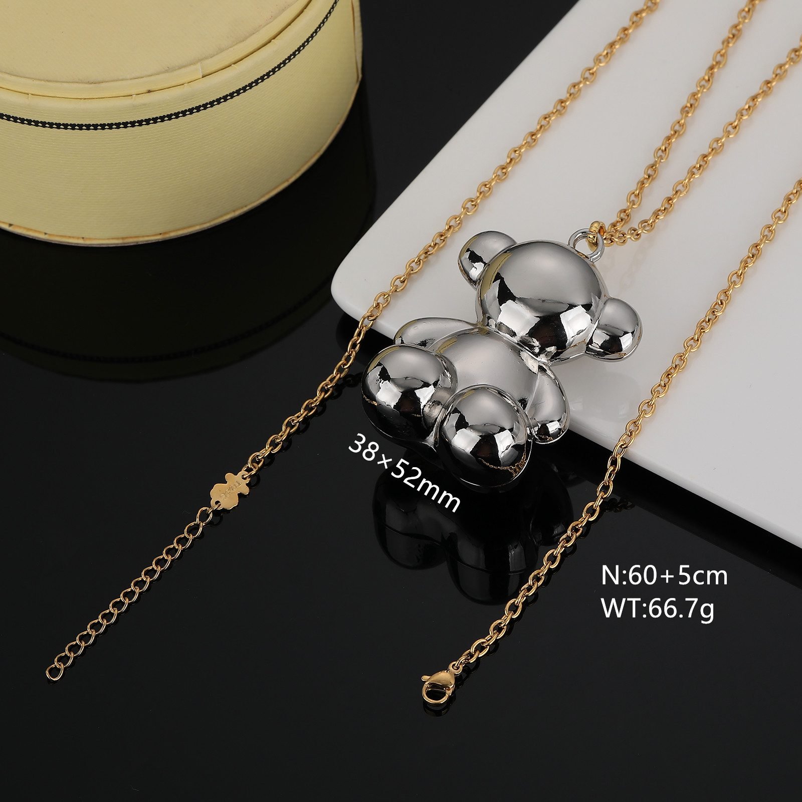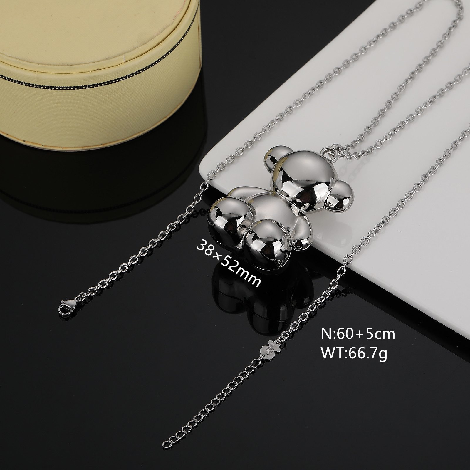 TOUS stainless steel material bright silver Spanish bear jewelry uses top grade stainless steel as the substrate, ensuring the durability and lightweight texture of the jewelry. The stainless steel surface is finely polished and polished to present a dazzling silver color, which is not only fashionable and elegant, but also highly textured. In terms of craftsmanship, the TOUS brand upholds the pursuit of perfection. The Spanish bear image on the jewelry is lifelike, with smooth and tense lines. Every detail has been carefully crafted and polished, showcasing the brand’s exquisite craftsmanship and excellent quality. Bright silver is one of the highlights of this accessory, representing nobility, purity, and eternity. This color, combined with the cute image of the Spanish bear, not only showcases the brand’s unique charm but also gives the accessories a unique charm. Whether worn as a daily accessory or a special occasion accessory, this accessory can add elegance and temperament to the wearer. In addition, the design of this accessory is simple yet exquisite. Whether it’s necklaces, bracelets, or earrings, they can perfectly match various clothing styles, showcasing the wearer’s unique taste and fashion attitude. TOUS stainless steel material bright silver Spanish bear jewelry is lightweight and comfortable, making it almost effortless to wear. Its sturdy and durable material ensures that the jewelry can withstand the test of time and is not easily deformed or damaged. At the same time, the bright silver color tone brings a noble and pure atmosphere to the wearer, allowing people to feel the charm of fashion and elegance in daily life. The length of this necklace is 60+5cm, and the pendant is 38x52mm.