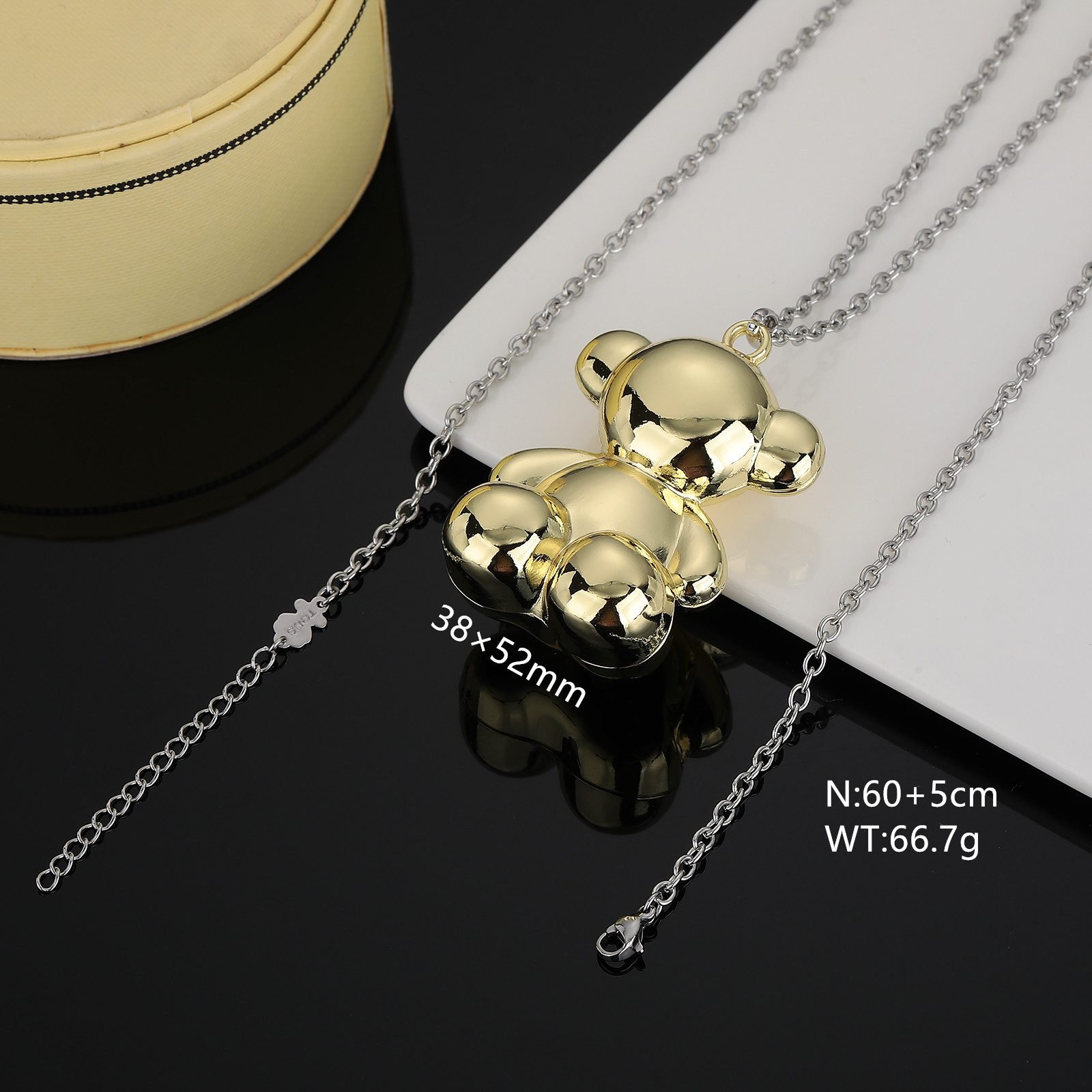 TOUS stainless steel material bright yellow Spanish bear jewelry uses high-quality stainless steel as the substrate, ensuring the durability and lightweight texture of the jewelry. The stainless steel surface has undergone special treatment, presenting a bright yellow appearance. This color is full of vitality and a sunny atmosphere, making the jewelry shine with dazzling brilliance. In terms of craftsmanship, the TOUS brand always pursues excellence. The image of the Spanish bear on the jewelry is lifelike, cute, with smooth and dynamic lines. Every detail has been carefully crafted, showcasing the brand’s ingenuity and excellent quality. At the same time, the surface of the jewelry has been polished, smooth and delicate, with a comfortable touch, making it irresistible. Bright yellow is one of the highlights of this accessory. This color is bright and lively, full of youth and vitality, bringing a relaxed and joyful mood to the wearer. The Spanish bear, as the mascot of the TOUS brand, perfectly combines its cute image with bright yellow, showcasing the brand’s unique charm and giving accessories a unique charm. In addition, the design of this accessory is simple yet fashionable. Whether worn around the neck or wrist, it can add a highlight to the wearer’s appearance. Whether paired with casual or formal attire, it can showcase the wearer’s unique taste and fashion attitude. The length of this necklace is 60+5cm, and the pendant is 38x52mm.