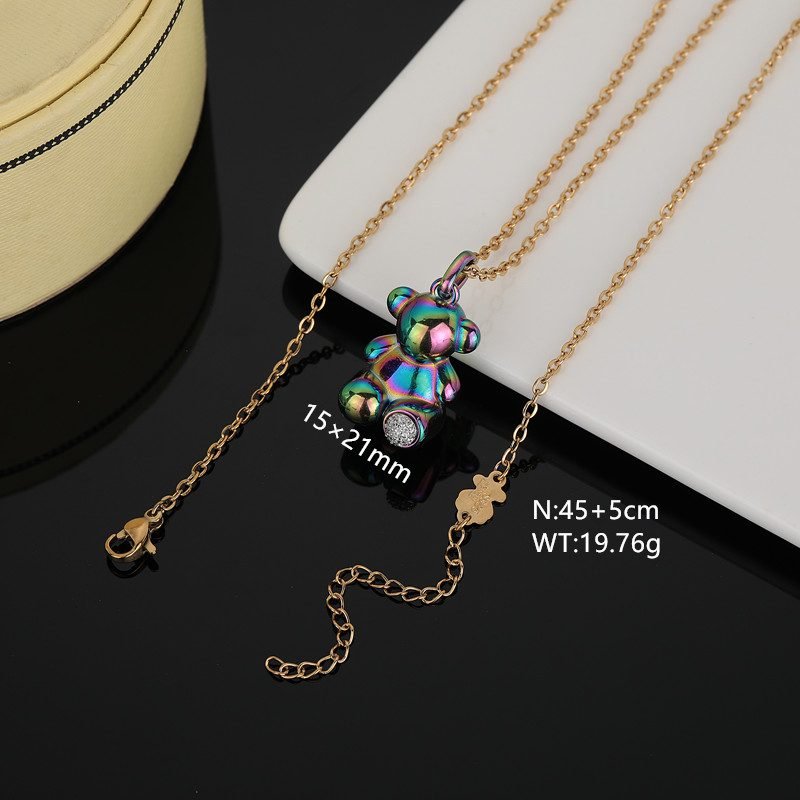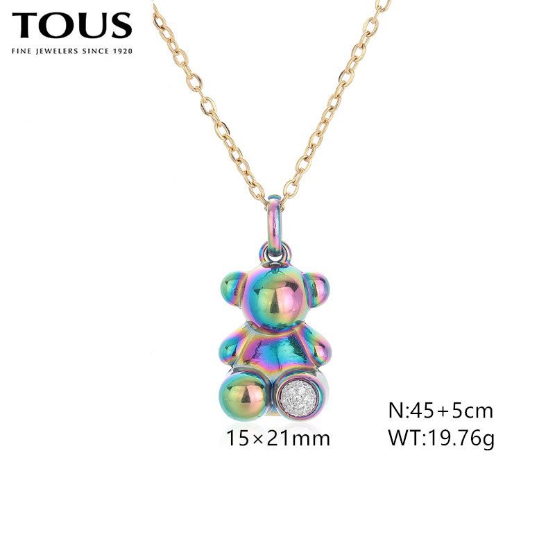TOUS stainless steel colorful gemstone Spanish bear jewelry perfectly blends the brand’s classic elements with modern aesthetics. Using high-quality stainless steel as the main material and undergoing special processing, it presents a dazzling visual effect. This accessory is inspired by the Spanish bear and showcases the brand’s unique cuteness and agility. The Spanish bear, as the mascot of the TOUS brand, has become a symbol of the brand with its round and cute image. In this accessory, the Spanish bear is cleverly depicted with smooth lines and vivid forms. And the most eye-catching thing is its dazzling appearance. Through advanced surface treatment technology, stainless steel presents a rich and colorful color, like a rainbow. In front of the feet of the Spanish bear, there is a brilliant gemstone set as an embellishment, adding a touch of brightness to the entire jewelry. This gemstone has been carefully selected and polished, shining with charming light, forming a sharp contrast with the dazzling Spanish bear, making it more noble and exquisite. TOUS stainless steel colorful gemstone Spanish bear jewelry uses high-quality stainless steel as the main material, ensuring the durability and non deformability of the jewelry. The dazzling surface treatment process adopts advanced nanotechnology, which presents a unique color effect to stainless steel through multi-layer coating and reflection, while maintaining long-term brightness. The inlay process of gemstones is also exquisite, using stable claw inlay technology to ensure that the gemstones are not easily detached or damaged. The entire jewelry production process undergoes strict quality testing to ensure that each product meets the brand’s high standards. This TOUS stainless steel colorful gemstone Spanish bear accessory is lightweight and exquisite, worn around the neck or wrist, showcasing the wearer’s fashion taste and conveying a unique emotion. The dazzling appearance stands out even more in the sunlight, making you the center of attention. Whether it’s for daily wear or attending important occasions, this TOUS stainless steel colorful gemstone Spanish bear accessory can be your best partner. Its fashionable design and unique charm allow you to exude confidence and charm at any time. The length of this necklace is 45+5cm, and the pendant is 15x21mm