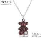 This accessory uses high-quality stainless steel as the main material, and through exquisite craftsmanship, the surface presents a deep and low-key dark brown color. This dark brown color tone not only exudes a natural and retro atmosphere, but also gives jewelry a unique sense of stability. The sturdy and durable properties of stainless steel ensure the long-term use of jewelry, so you don’t have to worry about its quality. Among the many classic elements of TOUS, the image of the Spanish bear has always been highly anticipated. This dark brown gemstone Spanish bear accessory cleverly incorporates this classic element, showcasing the liveliness and agility of the Spanish bear with its round and cute shape and smooth lines. The dark brown color tone adds a sense of stability and grandeur to the jewelry, making the entire design more unique and eye-catching. In front of the feet of the Spanish bear, there is a brilliant gem set. This gemstone has been carefully selected and polished, forming a sharp contrast with the dark brown Spanish bear. The brilliant radiance of the gemstone and the steady dark brown background complement each other, further highlighting the nobility and delicacy of the jewelry. TOUS stainless steel material dark brown gemstone Spanish bear jewelry is lightweight and exquisite, whether worn on the neck or wrist, it can become a highlight in your style. The dark brown appearance emits a charming luster in the sunlight, adding a unique charm to your overall design. Whether paired with casual or formal attire, this accessory can be easily mastered, showcasing your unique taste and personality. The length of this necklace is 45+5cm, and the pendant is 15x21mm