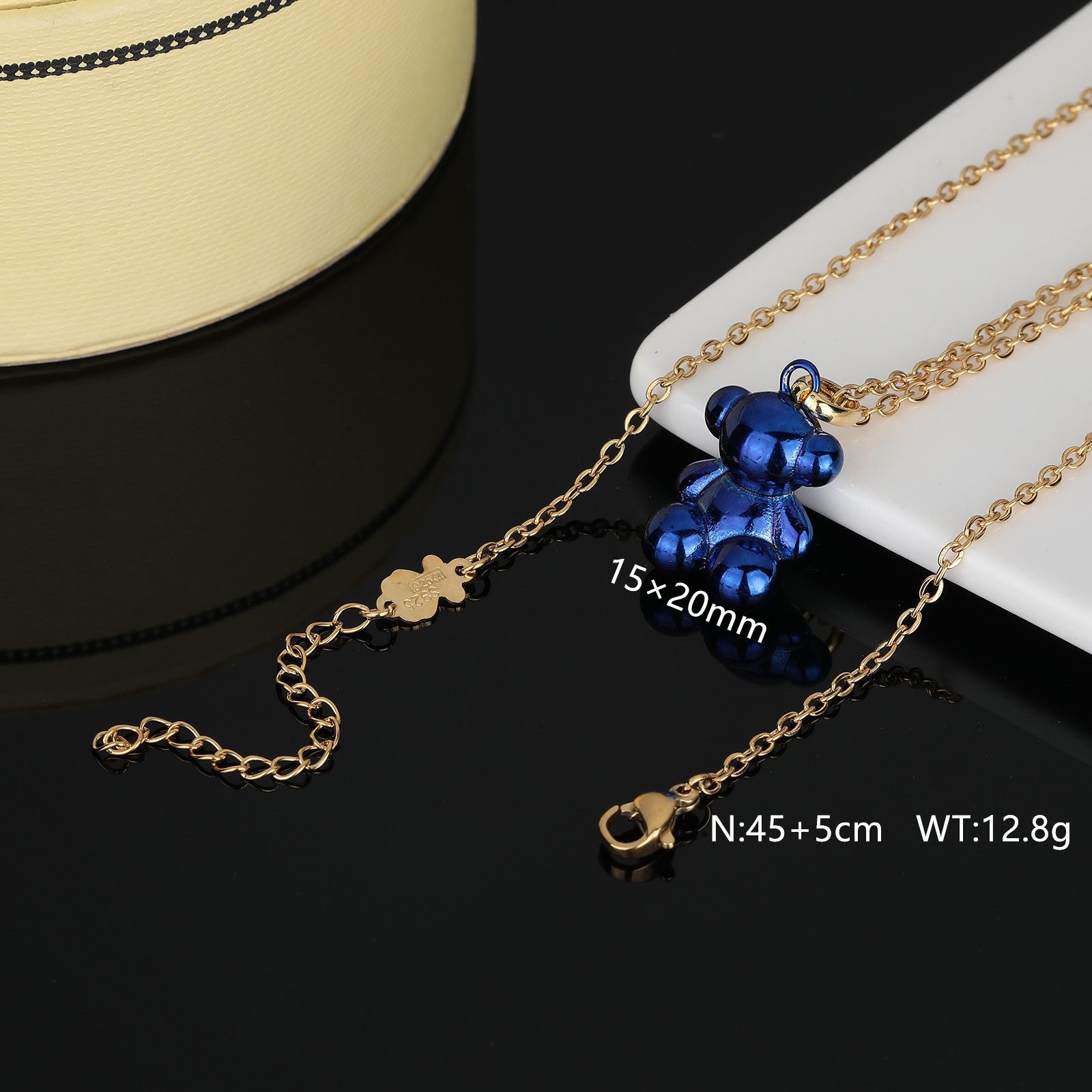 Using high-quality stainless steel as the substrate, this TOUS Spanish bear accessory not only ensures its sturdy and durable characteristics, but also ensures a lightweight and comfortable wearing experience. The deep blue surface treatment adds a mysterious and elegant color to the jewelry, making it stand out among many jewels. In terms of craftsmanship, the TOUS brand has always adhered to the combination of exquisite traditional craftsmanship and modern design concepts. This Spanish bear accessory has smooth lines and realistic shapes, with every detail carefully polished and carved, showcasing the brand’s relentless pursuit of quality. The use of dark blue is a major highlight of this accessory. It is different from common gold and silver tones, deep and rich in connotation, adding a unique charm to the wearer. The image of the Spanish bear is cute and vivid, complementing the deep blue background, showcasing the brand’s unique design language and conveying an elegant yet lively fashion attitude. Whether used as a necklace pendant, bracelet accessory, or earring embellishment, this accessory can easily match various clothing styles, adding a touch of brightness to the wearer’s overall appearance. TOUS stainless steel deep blue Spanish bear jewelry is lightweight and comfortable to wear, with almost no sense of burden. Its sturdy and durable materials ensure that the jewelry can withstand the test of time, showcasing the wearer’s unique taste and fashion vision whether worn on a daily basis or in special occasions. The length of this necklace is 45+5cm, and the pendant is 15x20mm