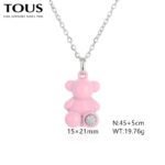 TOUS stainless steel material pink gemstone Spanish bear jewelry uses high-quality stainless steel as the main material, and after fine polishing and polishing, the surface presents a soft pink luster. This pink color not only exudes a romantic and sweet atmosphere, but also gives the jewelry a gentle and charming feeling. The sturdy and durable properties of stainless steel ensure the durability of jewelry, so you don’t have to worry about its quality. As the mascot of the TOUS brand, the image of the Spanish bear is exquisitely presented in this accessory. The round and cute shape and smooth lines fully showcase the liveliness and agility of the Spanish bear. The pink color scheme complements the image of the Spanish bear, making the entire accessory even sweeter and more adorable. In front of the feet of the Spanish bear, there is a delicate gemstone set. This gemstone has been carefully selected and polished, forming a harmonious match with the pink Spanish bear. The brilliant radiance of the gemstone and the pink background complement each other, further highlighting the nobility and delicacy of the jewelry. TOUS stainless steel material pink gemstone Spanish bear jewelry is lightweight and exquisite, whether worn on the neck or wrist, it can add a gentle and sweet touch to your appearance. The pink appearance emits a charming luster in the sunlight, as if emitting the scent of spring, bringing joy and relaxation to the wearer. This accessory is suitable for pairing with various styles of clothing, whether it is casual or formal, it can showcase the wearer’s sweet temperament and fashionable taste. The length of this necklace is 45+5cm, and the pendant is 15x21mm