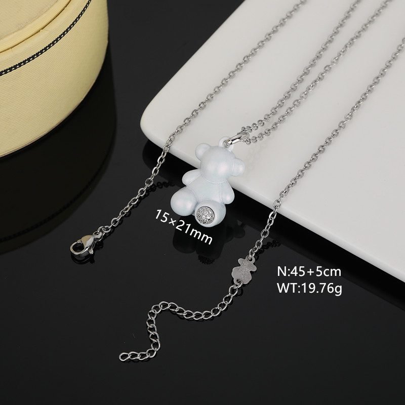 This accessory uses high-quality stainless steel as the main material, and after careful polishing and polishing, the surface presents an ultimate pure white luster. The sturdy and durable properties of stainless steel ensure the durability of the jewelry, while the pure white color tone gives it a fresh and elegant beauty. Whether for daily wear or special occasions, this accessory can showcase the wearer’s unique taste and personality. As the mascot of the TOUS brand, the image of the Spanish bear is perfectly displayed in this accessory. The round and cute shape and smooth lines fully showcase the liveliness and agility of the Spanish bear. The pure white color tone complements the image of the Spanish bear, making the entire accessory more fresh and bright. In front of the feet of the Spanish bear, there is a brilliant gem set. This gemstone has been carefully selected and polished, forming a sharp contrast with the pure white Spanish bear. The brilliant radiance of the gemstone and the pure white background complement each other, further highlighting the nobility and delicacy of the jewelry. TOUS stainless steel pure white gemstone Spanish bear jewelry is lightweight and exquisite, whether worn on the neck or wrist, it can easily enhance the wearer’s temperament. The pure white appearance emits a charming luster in the sunlight, as if emitting a pure light, adding elegance and charm to the wearer. This accessory is not only suitable for pairing with casual wear, but also perfectly blends with formal wear, showcasing the wearer’s unique taste and personality. The length of this necklace is 45+5cm, and the pendant is 15x21mm
