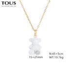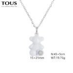 This accessory uses high-quality stainless steel as the main material, and after careful polishing and polishing, the surface presents an ultimate pure white luster. The sturdy and durable properties of stainless steel ensure the durability of the jewelry, while the pure white color tone gives it a fresh and elegant beauty. Whether for daily wear or special occasions, this accessory can showcase the wearer’s unique taste and personality. As the mascot of the TOUS brand, the image of the Spanish bear is perfectly displayed in this accessory. The round and cute shape and smooth lines fully showcase the liveliness and agility of the Spanish bear. The pure white color tone complements the image of the Spanish bear, making the entire accessory more fresh and bright. In front of the feet of the Spanish bear, there is a brilliant gem set. This gemstone has been carefully selected and polished, forming a sharp contrast with the pure white Spanish bear. The brilliant radiance of the gemstone and the pure white background complement each other, further highlighting the nobility and delicacy of the jewelry. TOUS stainless steel pure white gemstone Spanish bear jewelry is lightweight and exquisite, whether worn on the neck or wrist, it can easily enhance the wearer’s temperament. The pure white appearance emits a charming luster in the sunlight, as if emitting a pure light, adding elegance and charm to the wearer. This accessory is not only suitable for pairing with casual wear, but also perfectly blends with formal wear, showcasing the wearer’s unique taste and personality. The length of this necklace is 45+5cm, and the pendant is 15x21mm