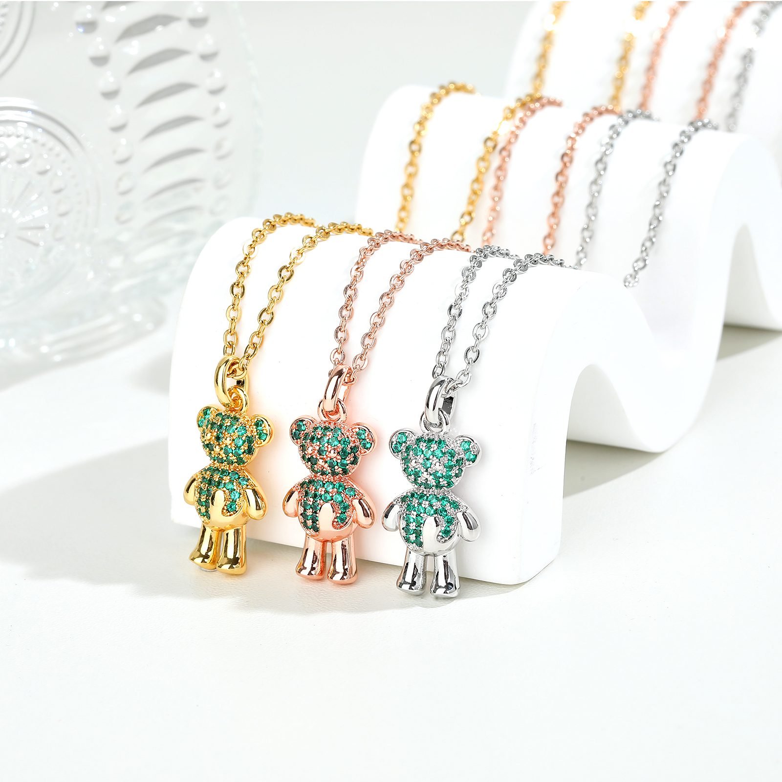 Incorporating the spirit of nature, TOUS ingeniously presents this Spanish teddy bear green zircon inlaid stainless steel necklace pendant, cleverly combining vibrant green with classic teddy bear design, adding a unique freshness and vitality to your outfit. Using high-quality stainless steel material, ensuring the durability and lightweight wearing feel of the pendant, while also possessing anti allergy and corrosion resistance characteristics, making beauty more worry free. Specially selected bright and vibrant green zircon, through meticulous cutting and inlay techniques, each one shines with natural and vibrant light, adding a unique color and charm to the teddy bear pendant. As an iconic element of the TOUS brand, this pendant revolves around a cute and adorable bear image, symbolizing innocence, happiness, and luck. The teddy bear has a lively and cute shape, with smooth lines, showcasing a warm and friendly feeling. Green zircon not only adds visual highlights to the pendant, but also symbolizes hope and vitality, allowing the wearer to exude confidence and vitality in any occasion. Every detail has been meticulously crafted by TOUS craftsmen, from the outline of the teddy bear to the arrangement of zircons, revealing the ultimate pursuit of quality, ensuring that every angle of the pendant is flawless. This TOUS Spanish bear green zircon inlaid stainless steel necklace pendant can be the perfect accessory to add highlights to your daily wear or special occasions. Whether paired with a minimalist T-shirt to showcase a casual style or an elegant dress to showcase a noble temperament, it can be easily mastered, making every appearance a focal point for you. This vibrant and charming necklace pendant is not only a fashionable accessory, but also a thoughtful gift. Whether giving it to friends, family, or lovers, it can convey your beautiful blessings and care for them, making this gift a precious memory in their hearts.