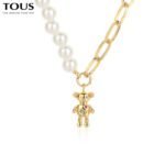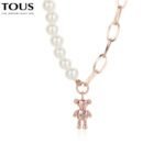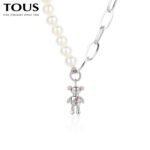 TOUS Stainless Steel Material Spanish Bear Pearl Large Ring Buckle Necklace Pendant