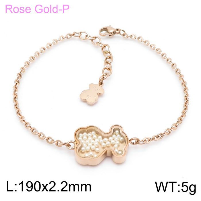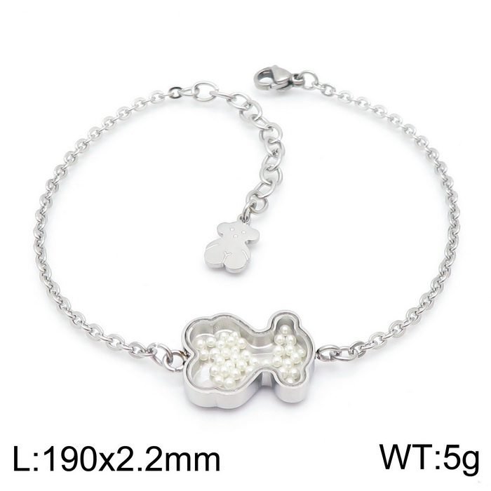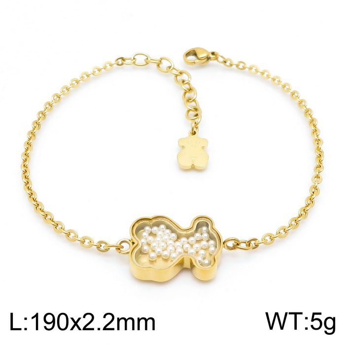 This bracelet is made of high-quality stainless steel as the main material, which not only ensures the durability of the jewelry, but also endows it with excellent performance in corrosion resistance and allergy resistance. It is suitable for various skin types to wear and maintain a bright and new appearance for a long time. The center of the bracelet is embedded with a delicate and cute Spanish bear shape, which is lifelike and symbolizes innocence and luck, adding a touch of childlike fun and warmth to the wearer. The little bear is surrounded by transparent round white zircon stones, each carefully selected and cut, sparkling with a clear and dazzling light like morning dew, adding an elegant and luxurious touch to the overall design.