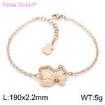 This bracelet is made of high-quality stainless steel as the main material, which not only ensures the durability of the jewelry, but also endows it with excellent performance in corrosion resistance and allergy resistance. It is suitable for various skin types to wear and maintain a bright and new appearance for a long time. The center of the bracelet is embedded with a delicate and cute Spanish bear shape, which is lifelike and symbolizes innocence and luck, adding a touch of childlike fun and warmth to the wearer. The little bear is surrounded by transparent round white zircon stones, each carefully selected and cut, sparkling with a clear and dazzling light like morning dew, adding an elegant and luxurious touch to the overall design.
