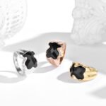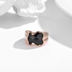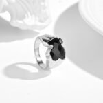 Black zircon, mysterious embellishment: The highlight of the ring lies in the bright black zircon embedded in it. Black zircon adds a mysterious and profound atmosphere to the ring with its unique color and luster. These zircons are finely cut and embedded, perfectly integrated with the overall design of the ring, forming a unique visual beauty. Under the illumination of light, the black zircon shines even brighter, making one’s eyes sparkle.