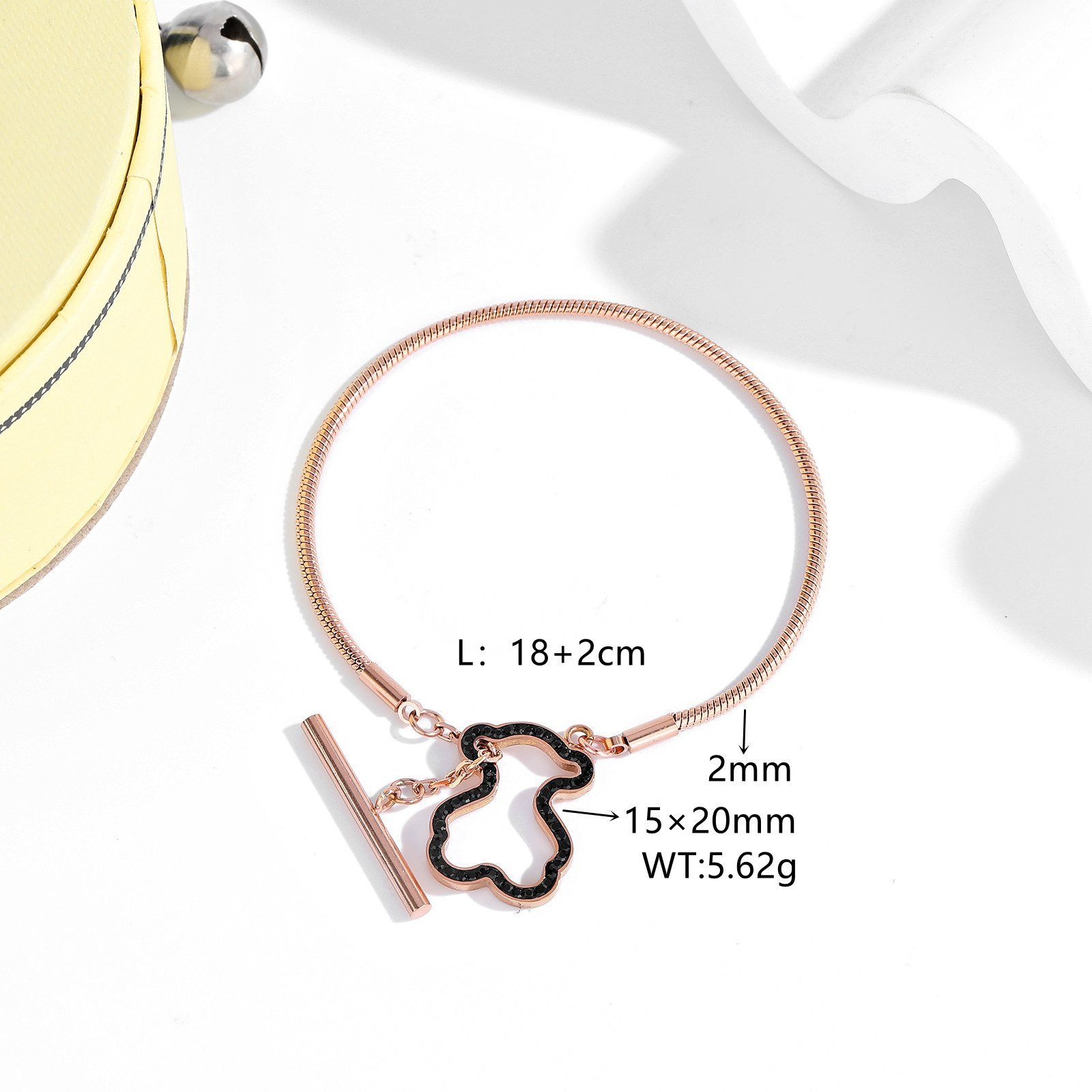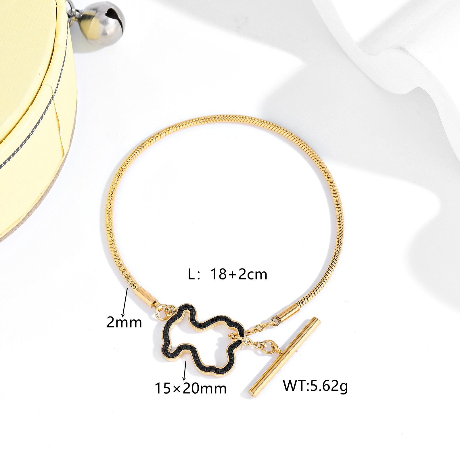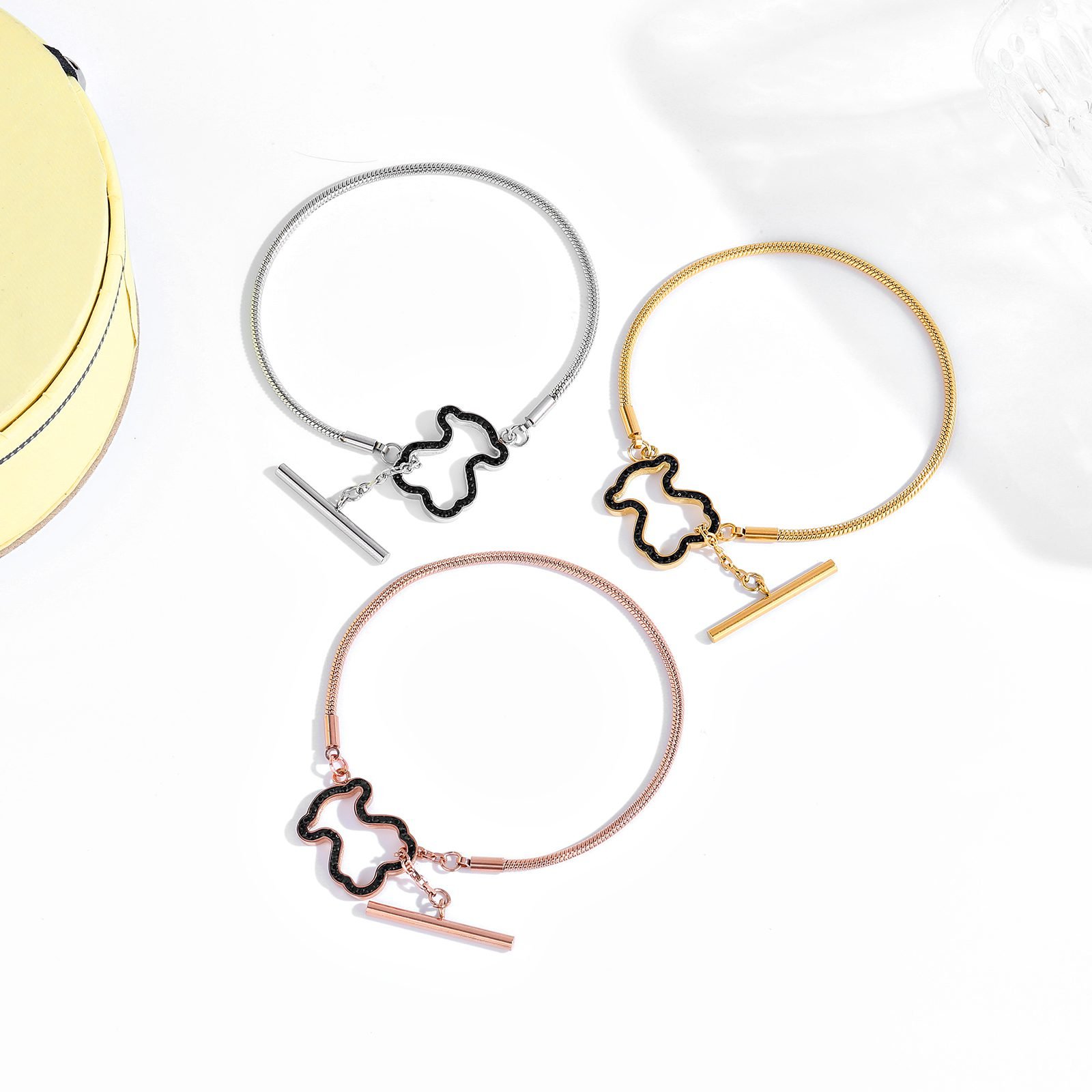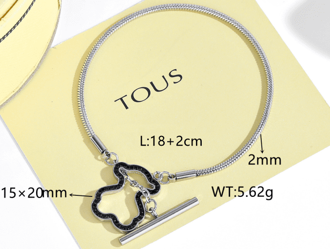 This stainless steel Spanish bear frame black zircon inlaid bracelet is another masterpiece of the brand’s ingenuity, perfectly integrating tradition and modernity, cuteness and elegance, bringing a unique fashion charm to the wearer. Material selection: The bracelet is mainly made of high-quality stainless steel, which not only has excellent corrosion resistance and durability, but also gives the bracelet a cold and tough luster. The lightweight texture of stainless steel ensures the comfort of wearing the bracelet, making the wearer feel almost no burden. Design highlight: The highlight of the bracelet lies in its unique Spanish bear frame design. This classic element is cleverly integrated into the bracelet, carefully carved with stainless steel material to create the outline of a teddy bear, which is lifelike in shape and presents a cute and playful atmosphere. And within the frame are sparkling black zircons, which, with their deep and mysterious luster, form a sharp contrast with the bear pattern, adding a touch of nobility and elegance to the bracelet. Embedding technique: The black zircon inlay technique is exquisite, with each zircon accurately embedded within the frame, showcasing the brilliance of the zircon while maintaining the harmony and balance of the overall design. During the inlay process, craftsmen pay attention to every detail to ensure that the zircon is stable and does not fall off, while exhibiting the best gloss effect. Unique Style: The design of this bracelet is unique and charming, combining the classic element of the Spanish bear with modern fashion elements to create a fashionable atmosphere that is both retro and avant-garde. The simple lines of the bracelet complement the sparkling luster of the black zircon, showcasing a low-key yet luxurious beauty. Whether paired with casual wear or formal attire, this bracelet can add a unique highlight to the wearer’s overall look. Emotional symbolism: As a symbol of the TOUS brand, the Spanish bear has always carried the beautiful symbolism of innocence, happiness, and luck. Giving this bracelet to family and friends or wearing it on your own is a symbol of hope and expectation for a better life. It symbolizes the wearer’s pure and happy attitude like a little bear, and also implies a profound inner world and endless charm.