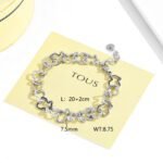 TOUS, This jewelry brand, originating from Spain and full of romance and childlike charm, has once again launched a stainless steel Spanish bear frame series handmade bracelet with exquisite design that is irresistible. This bracelet is not only a masterpiece of fashion accessories, but also a work of art that conveys emotions and stories. Material selection: High quality stainless steel is carefully selected as the base material for the bracelet, ensuring its dual advantages of durability and glossiness. The lightness and toughness of stainless steel make this bracelet comfortable and unrestrained to wear, perfectly fitting various wrist lines. Design highlight: The core design of the bracelet lies in its unique Spanish bear frame series structure. Each teddy bear frame is finely crafted from stainless steel, with various shapes, yet retaining the cute and lively charm unique to teddy bears. These teddy bear frames are connected together to form a fun and dynamic bracelet, as if a group of lively teddy bears are playing and frolicking between their wrists. Handmade craftsmanship: The uniqueness of this bracelet lies in its handmade craftsmanship. The carving of each teddy bear frame and the connection of each chain are the result of the craftsman’s hard work and wisdom. They carefully feel every detail, striving to perfectly blend the agility of the teddy bear with the elegance of the bracelet. This handmade craftsmanship not only endows the bracelet with unique artistic value, but also allows the wearer to feel the warmth and emotion from the TOUS brand. Unique Style: The design style of the bracelet is simple yet exquisite, combining the unique charm of Spanish culture with the aesthetic trend of modern fashion. The serial design of the bear frame breaks the monotony and boredom of traditional bracelets, bringing a new visual experience to the wearer. Whether paired with casual wear or formal attire, this bracelet can become a highlight of the overall look, showcasing the wearer’s unique taste and personality.