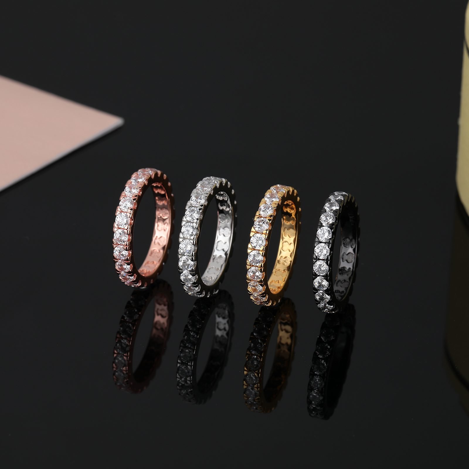 Zircon inlay: The surface of the ring is carefully arranged with dazzling transparent zircons, each carefully selected and cut to ensure a radiant and shining finish. Zirconia is embedded throughout the entire ring, creating a dazzling visual effect, like the brightest star in the night sky, unforgettable at a glance.