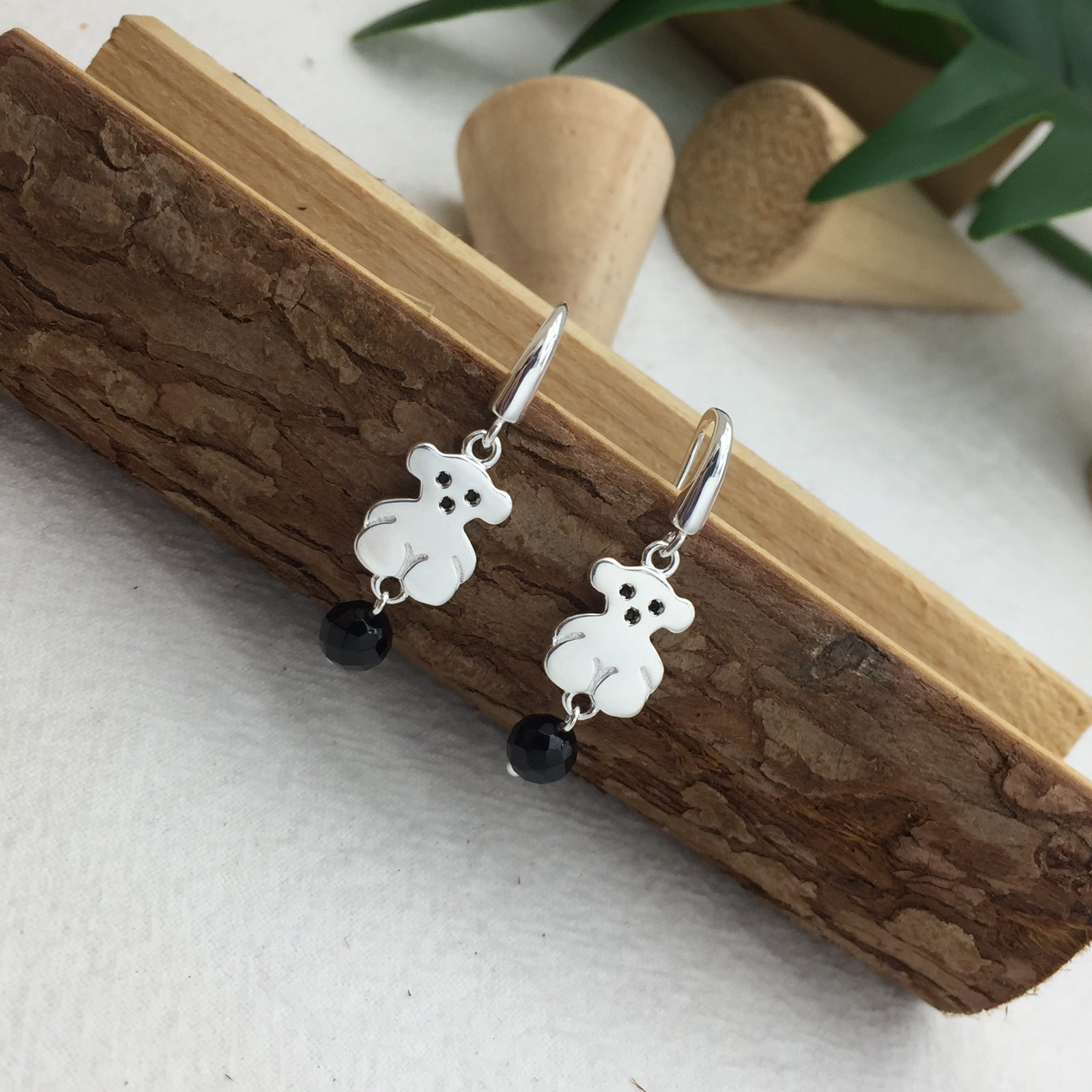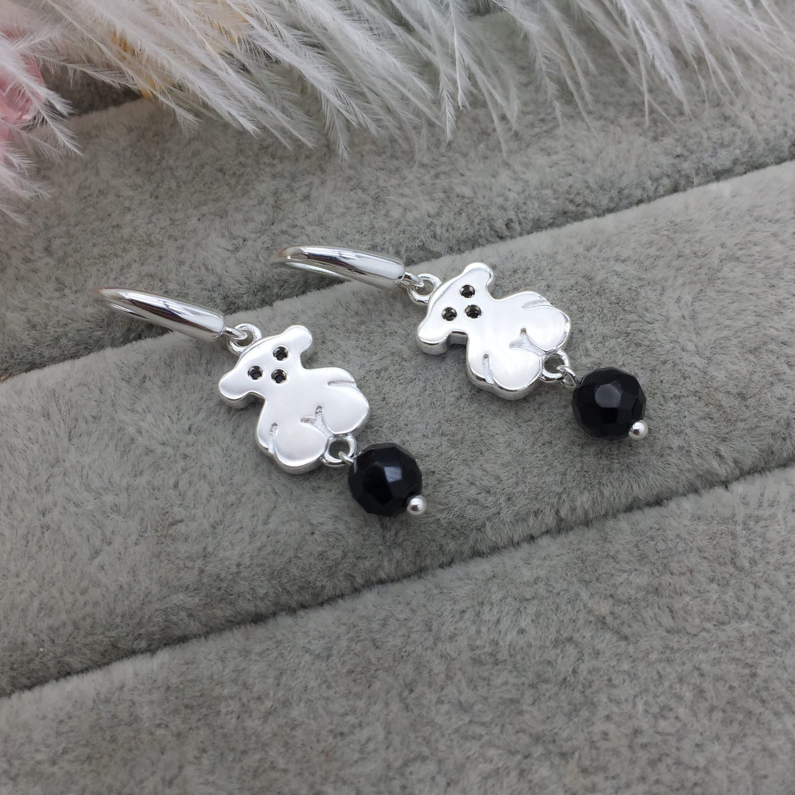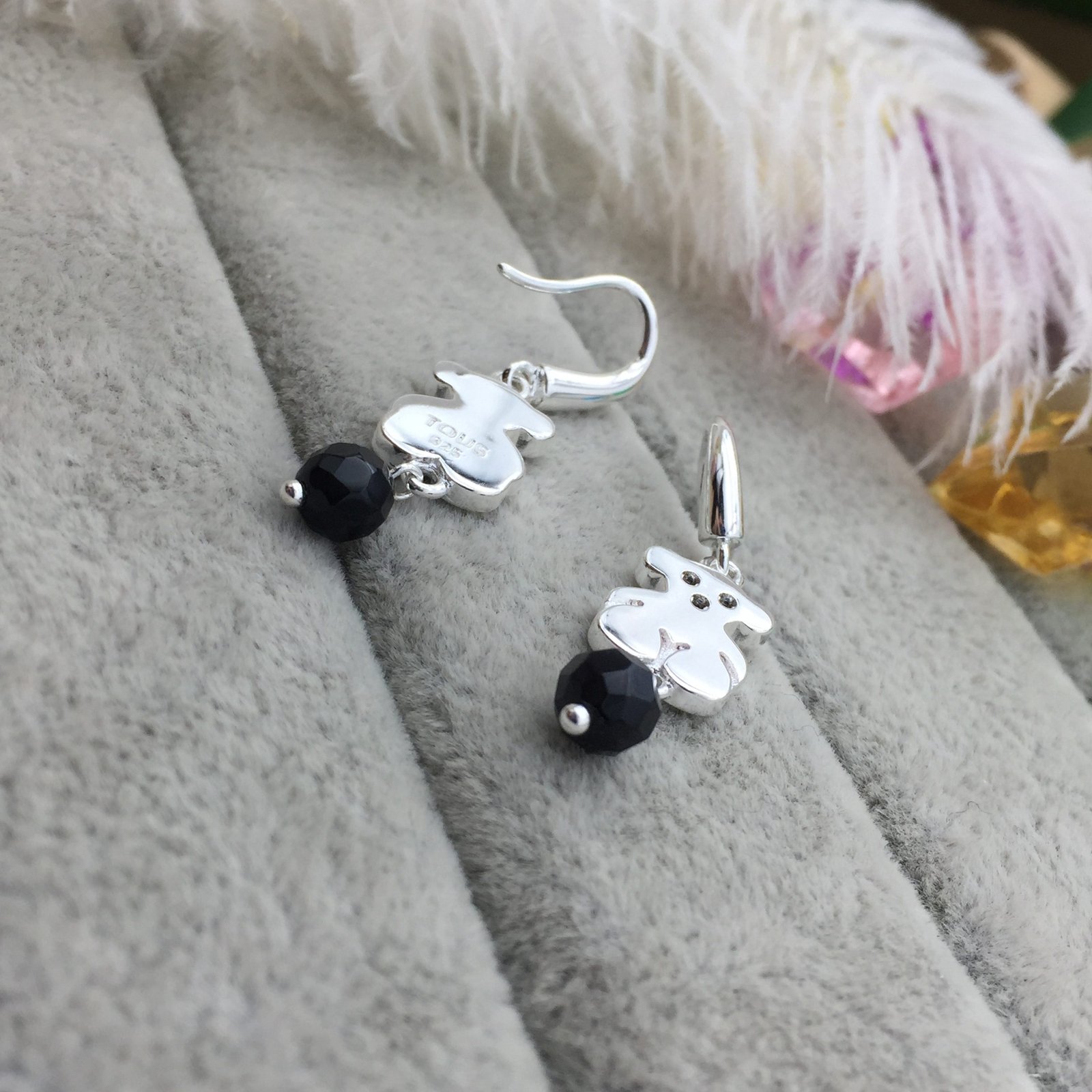 TOUS Sweet Dolls sterling silver earrings with Spinels and Onyx. Inset: 1.15 cm. Loop fastener.